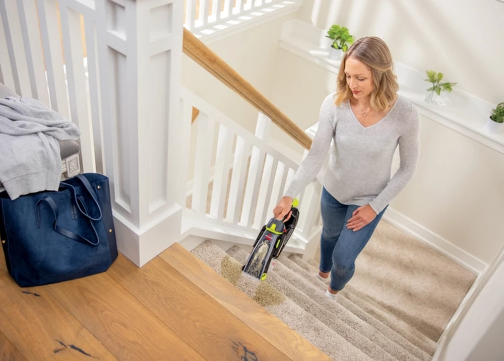 Effortlessly remove everyday pet spills and stains with the BISSELL® Pet Stain Eraser Plus portable carpet cleaner, an essential for any pet-friendly home. Grab and go cleaning From carpets to upholstery, the Pet Stain Eraser Plus portable carpet cleaner handles an array of surfaces. Tackle everything from pet accidents to food spills with superior suction and stain-fighting power when paired with the included BISSELL® PRO OXY Spot & Stain solution. Spot clean hard-to-reach areas Pet messes can happen anywhere. With a compact, lightweight design, the Pet Stain Eraser Plus cleaner is easily maneuvered, ideal for cleaning tight corners, carpet stairs, car interiors, and more. Dynamic cordless design Clean on-the-go with portable, cordless convenience. With a run time of 15 minutes, you’re free to power through various pet stains and messes without interruption when and where they happen. BISSELL PRO OXY Spot & Stain Freshen up your space and permanently remove pet stains with the two included 8-ounce bottles of BISSELL® PRO OXY Spot & Stain formula. Not only does this formula just remove stains, but it also helps prevent future ones with StainProtect® Technololgy. Power Rating 7.2 V Power Source Cordless Rechargeable Charge Time 4 Hours Run Time 15 Minutes Name BISSELL® Pet Stain Eraser Plus ID 3182 Quantity 1 Similar Models 3180, 3181 Surface Type Carpet and Rugs, Low Pile Carpet, Stairs, Carpet, Area Rugs, Pet Beds, Spot and Stain, Upholstery and Fabric Cleaning Path Width 3" Dirty Tank Capacity 8 oz Clean Tank Capacity 8 oz. Color Black with Electric Green Accents Carry Handle Yes Weight 3.3 lbs Weight 3.3 lbs