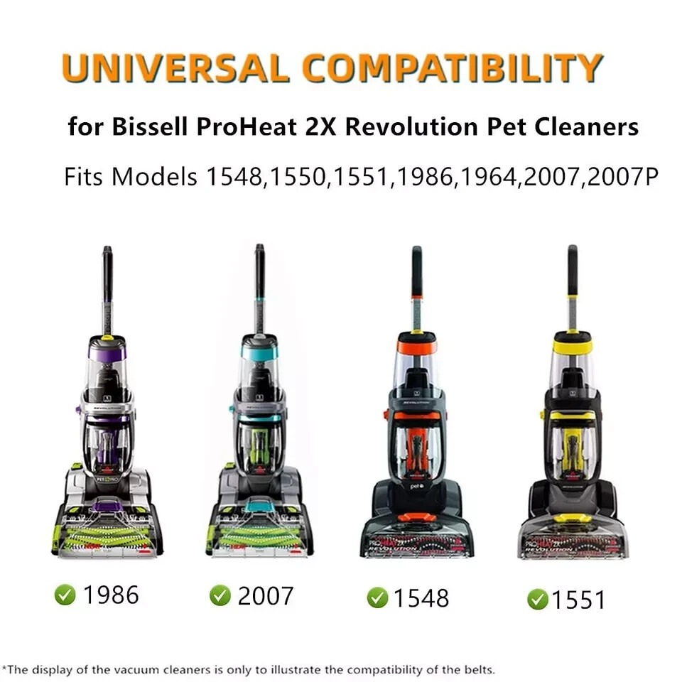 JEDELEOS Replacement Belts for Bissell ProHeat 2X Revolution Pet (Pro) Carpet Cleaner Model 1548,1551,1986,1964, 2007, 2007P, 1550 Series, Compared to Parts 1606428 (Pack of 2) ✓ Free 30 Day Returns ✓ Free Shipping Wide Compatibility - These Belts perfectly fit for Bissell ProHeat 2X Revolution Pet Pro Cleaner 1986,1964,2007,2007P; Bissell ProHeat 2X Revolution Pet Carpet Cleaner 1548, 1550, 1551, 15483. Easy to Replace - Simply remove the damaged belt from your vacuum head and replace this new drive belt in the original position, bring your vacuum cleaner back to life! Premium Quality - Made of high-quality rubber, durable and flexible, long lasting reliability, making vacuuming more powerfully. Warm Tips - Replace your vacuum cleaner belts every 3 to 9 months to ensure optimum performance of your vacuum cleaner. What You Get - 2 * Replacement Belts 1606428, 60-Day money back, 12-Month worry-free product replacement warranty, and 24-hour easy-to-reach customer service.