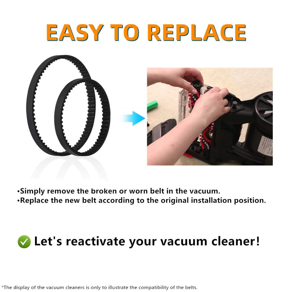 Store New Arrivals Add to Favorite View Feedback Replacement Belt Set for Bissell Proheat 2X Revolution Pet Carpet Cleaner Model 1548 1551 1551W 1550 Series, Replace Parts 1606419 and 1606418 Description Item model number Parts 1606419 and 1606418 Belt Style Gear Drive Belt Product Dimensions 4.72"L x 0.39"W Material Rubber Country of Origin China Broad Compatibility - These Belts are compatible with Bissell ProHeat 2X Revolution Pet Carpet Cleaner Model 1548, 15481, 15482, 15483, 15484, 15489, 1548F, 1548L, 1548P, 1548Q, 1548R, 1548T, 1548U; 1550, 15501, 15503, 15504, 15505, 15506, 15507, 15508, 1550L, 1550V, 1550X,1550F, 1550G; 1551, 1551W. Customized Made - Made of elastic rubber, durable and flexible, have a long-lasting reliability, making vacuuming more powerfully. Easy to Replace - Simply remove the damaged belt from your vacuum head and replace this new drive belt in the original position, bring your vacuum cleaner back to life! Warm Tips - Replace your vacuum cleaner belts every 3 to 9 months to ensure optimum performance of your vacuum cleaner. What You Get - Each package contains a Small Brush Belt and a Large Pump Belt for Bissell ProHeat 2X Revolution Pet Carpet Cleaner. Product Description About JEDELEOS: JEDELEOS was founded to provide everyone with the vacuum accessories you need and we specialized in developing and manufacturing various kinds of replacement parts for meeting your need! We welcome you and thank you for your support! High-quality Replacement Vacuum Belt Set for Bissell ProHeat 2X Revolution Pet 1548, 1550, 1551, 1551W Series Carpet Cleaner Wide Compatibility - Perfectly Fit for for Bissell ProHeat 2X Revolution Pet Carpet Cleaner Models 1548, 1550, 1551, 1551W Series. Easy to Replace - Simply remove your broken belt and replace the new one, then reactivate your vacuum cleaner. Premium Quality - Made of high-quality rubber, durable and flexible, long-lasting reliability. Packing List - Each package comes with 2-Pcs Brand-new Belts. Premium Belt Each Belt is made of high-quality rubber, durable and flexible, long-lasting reliability. Standard Size The same belt size as the original (Compared to Parts 1606419 & 1606418), convenient to replace and install. 1-Set Included We suggest to replace the belt every 3 to 9 months to ensure the performance of vacuum, the complete belt kit allows you to give your vacuum cleaner a complete update, lasting throughout the year. Specifications Brand JEDELEOS Belt Type Geared Belt Material Premium Rubber Quantity 1-Set (2-Pcs) Compatiblity for Bissell ProHeat 2X Revolution Pet Carpet Cleaner 1548, 15481, 15482, 15483, 15484, 15489, 1548F, 1548L, 1548P, 1548Q, 1548R, 1548T, 1548U; 1550, 15501, 15503, 15504, 15505, 15506, 15507, 15508, 1550L, 1550V, 1550X,1550F, 1550G; 1551, 1551W. ABOUT US We offer the best prices around on high quality products. Our E-store includes media such as books, movies, music and games while offering electronics, toys, sporting apparel, clothing, tools, general home, garden items and more. SHIPPING We are always working hard to ensure your package arrives as soon as possible. Please understand that some factors like weather, high postal traffic, and the performance of shipping companies are outside of our control. We offer free shipping to the lower 48 states and ship within 2 business days of payment, usually sooner. We do not accept P.O. Boxes. Please provide a physical address. RETURNS We offer a 30-Day Return Policy on items which you are not completely satisfied with. You have the option for a full-refund or an exchange of the item. No returns are available on items shipped outside of the USA. PAYMENT We accept PayPal. CONTACT US This page content is yet to come Please ad us to your favorite seller and visit again later Thank You