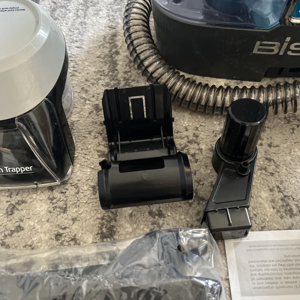 The Bissell SpotClean Carpet Cleaner Portable Model 97494 is a vintage retro mid-century collectible item that allows for portable and convenient spot cleaning of carpets. This compact and lightweight cleaner is perfect for reaching tight spaces and removing stubborn stains without the need for a large, bulky cleaning machine. Ideal for collectors or those looking for a simple solution for occasional carpet cleaning, this Bissell SpotClean model offers a unique and nostalgic approach to keeping carpets fresh and clean. Used one time.
