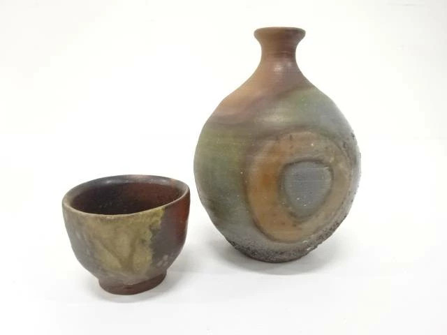 Bizen Ware Sake Bottle Set Tokkuri and Ochoko Used Very Good Condition