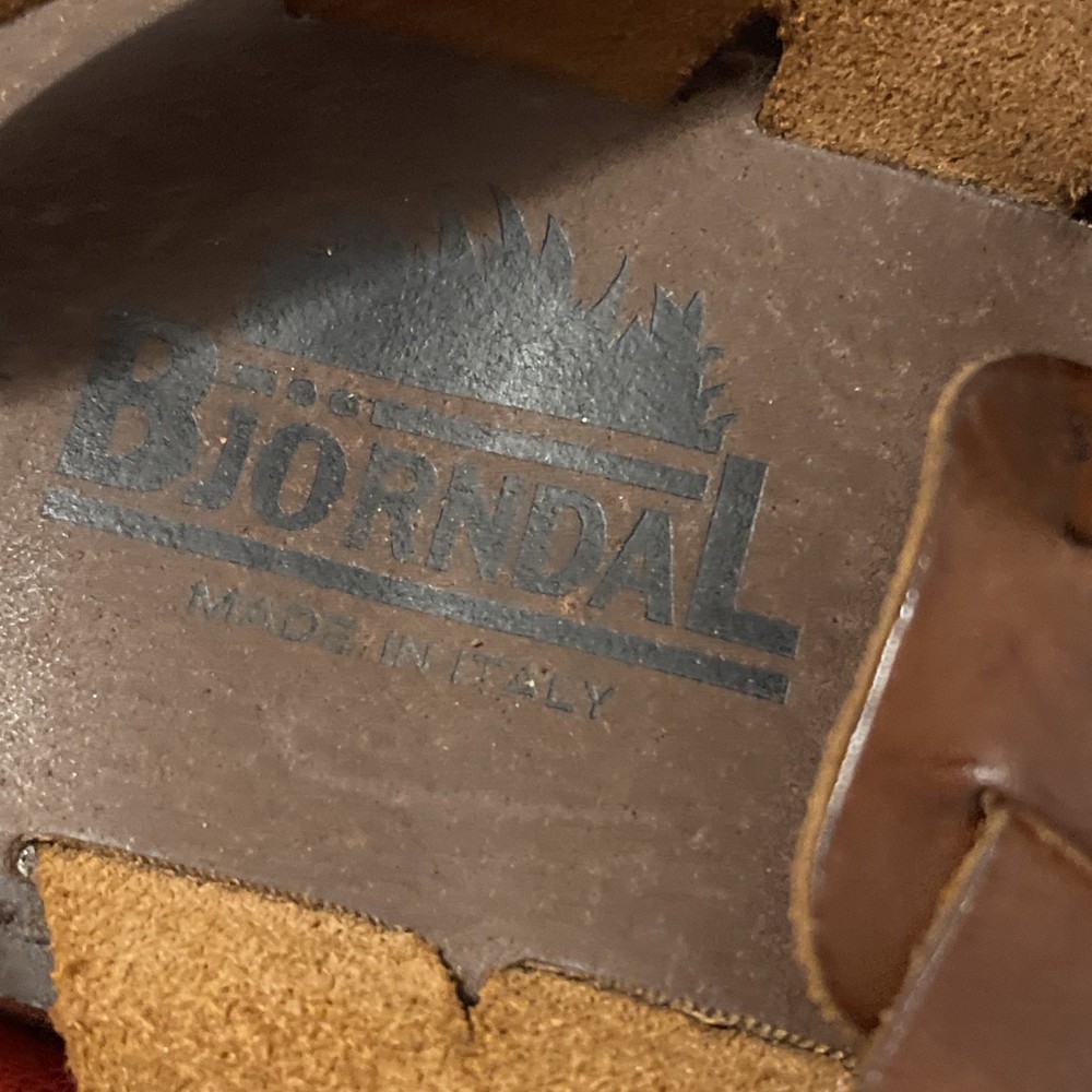 Season: Spring, Summer Occasion: Casual Outsole Material: Leather Vintage: No Style: Slide Color: Brown Type: Sandal Accents: Logo Department: Men Lining Material: Leather Insole Material: Leather Pattern: Solid Upper Material: Leather Country of Origin: Italy Brand: BjorndaL US Shoe Size: 11 Customized: No