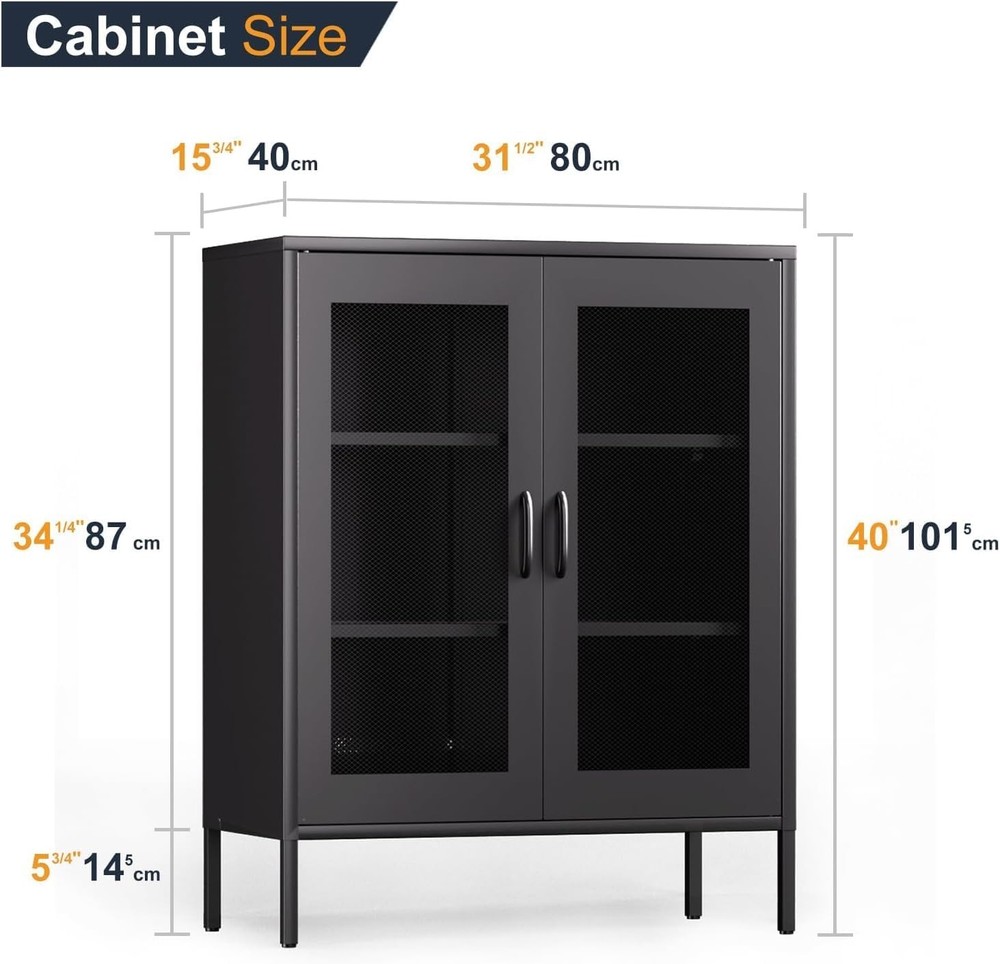 Product Description Features: Secure and Accessible: The cabinet features 2 flat panel doors with magnetic locks and rubber buffers, allowing for quiet and tight closure, while the mesh design promotes ventilation and visibility of contents. Durable Steel Construction: This storage cabinet is crafted from high-quality powder-coated alloy steel, ensuring long-lasting durability and sturdiness. Versatile Storage Solution: With 2 adjustable shelves and a spacious interior measuring 15.75"D x 31.5"W x 39.96"H, this cabinet offers ample storage space for various items in homes, offices, garages, or commercial spaces. Easy Assembly: This freestanding cabinet requires assembly, but comes with detailed instructions to guide you through the process. About this item Versatile Storage Solution: With 2 adjustable shelves and a spacious interior measuring 15.75"D x 31.5"W x 39.96"H, this cabinet offers ample storage space for various items in homes, offices, garages, or commercial spaces. Secure and Accessible: The cabinet features 2 flat panel doors with magnetic locks and rubber buffers, allowing for quiet and tight closure, while the mesh design promotes ventilation and visibility of contents. Easy Assembly: This freestanding cabinet requires assembly, but comes with detailed instructions to guide you through the process. Durable Steel Construction: This storage cabinet is crafted from high-quality powder-coated alloy steel, ensuring long-lasting durability and sturdiness. On Aug 17, 2025 at 19:26:20 PDT, seller added the following information: