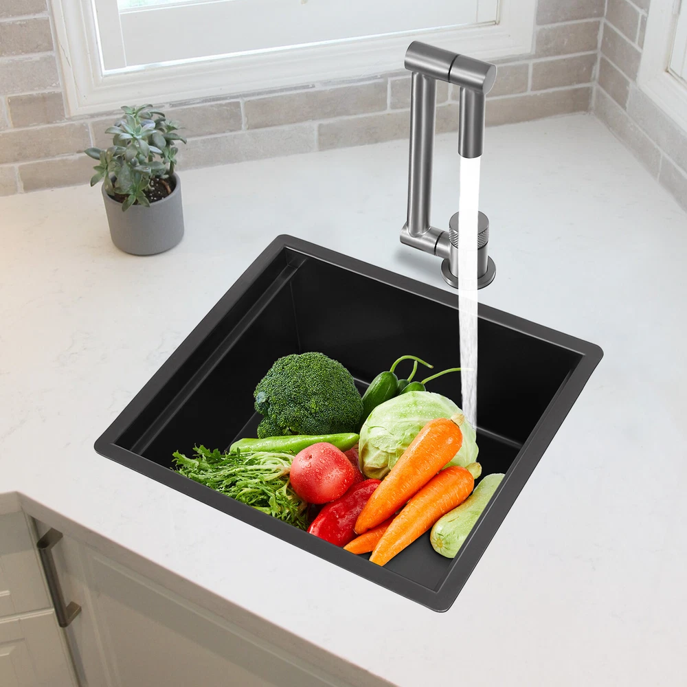 304 Stainless Steel Sink Kitchen Sink with Foldable and Rotatable Faucet Black Welcome~ Description This 304 stainless steel sink is made of high-quality materials and adopts excellent workmanship, making it sturdy and corrosion-resistant . Its enlarged and deepened sink not only reduces water splashing but also increases the space for cleaning a lot of cookware. With it, you can enjoy a more convenient life. Key Features Build to Last: It is made of high-quality 304 stainless ste el with a nano black diamond proce ss, s o it has good corrosion resistance , oxidation resistance, an d strength. It can be used in wet environments such as the kitchen and laundry room. Enhanced Load-bearing Capacity: It is made of sturdy construction and high-quality 304 stainless steel material, which can withstand large weights, so you can use it with more confidence. Large Capacity: The 11.4*13*6.5 inches product can hold a large number of dishes, making you more comfortable and efficient when washing. It is a great helper when you are cleaning dishes or preparing food. Thoughtful Design: The drainpipe can be freely bent, depending on the installation position, reducing use restrictions. The flexible 360° rotatable faucet spout and foldable faucet body allow you to clean every part of the sink. The pressing drain function works well to prevent foreign objects from clogging the pipes while preventing odors from being dispersed. Complete Set: The product package includes a sink, a faucet with hot and cold water pipes, a removable drainpipe and a drainboard, so you don't have to buy additional items, which greatly saves your time and money. Modern and Simple: The low-key black color and smooth lines give this sink set a modern and simple appearance, which fits most household styles. Easy to Install: Its simple structure and complete installation accessories allow you to easily complete the installation in a short time. In addition, two different mounting ways (flush mount, under mount) can meet your different needs. Effortless Cleaning: The smooth surface and round corners allow you to easily clean it without leaving dead corners of dirt accumulation. Quality Service: We are honored that you have chosen our product. We have sufficient confidence in the quality of the product so that you can buy it confidently. But if you have any questions, you can contact our customer service, he will patiently answer and solve your problems. Details Practical Foldable Faucet: The faucet with hot and cold water pipes allows you to conveniently adjust temperature of the water with the help of the knob. Thickened Inner Wall: The 1mm thickened inner wall can provide better support and load-bearing force for the sink. X-shaped Water Guiding Line: It can guide water flow and form vortices to achieve rapid drainage. Drain Board : It comes with small holes in the surface, which is suitable for drying dishes and defrosting meats. Smooth Edge: The rounded and smooth edges not only add to the aesthetics of the product but also improve the safety of use. Application This product can be widely used in homes, restaurants, laundry rooms, basements, bars, kitchens, food trucks, dessert shops, coffee shops, hotels, garages, gardens, etc. for cleaning tableware, vegetables, fruits, etc. Specifications Material: 304 Stainless Steel Process: Nano Black Diamond Color: Black Assembly Required: Yes Shape: Rectangular Mounting Type: Undermount, Flushmount Style: Modern Degree of Rotation of the Outlet Faucet: 360° Basin Thickness: 1mm/0.04in Drainpipe Length: 1m/3.28ft(Extension Length) Cold/Hot Inlet Pipes Length: 60cm/23.62in Overall Product Size: 28.96*33.02*2.56cm/11.4*13*6.5in Gross Weight: 6.6kg/14.55lbs Net Weight: 5kg/11.02lbs Package Size: 52*36*41cm/20.47*14.17*16.14in Package Included 1* 304 Stainless Steel Sink 1* Drain Board 1* Drainpipe 1* Faucet with Hot and Cold Water Pipes All Accessories for Assembly Notes Please check the size carefully before ordering. Please do not scratch its surface with sharp objects to obtain a longer service life. If you want to get a better installation result, we recommend that you hire a professional worker to install it. Please allow the slight color difference caused by the shooting light and 1-3cm error due to manual measurement, and make sure you do not mind before you order. Welcome to autocomponents999 Our store has a wide range of product categories for you to choose from. Welcome to click on our store to make a purchase or consult us, and we will recommend the products you need. Welcome to autocomponents999 to purchase products, please feel free to contact us for any questions.👍 Payment Delivery details Terms of sales About us Contact us Payment We accept ebay payment 。 Fees such as import duties, taxes are not included in the item price or shipping costs. These charges are the buyer's responsibility. Delivery details Shipping: 2-9 working days to: USA Terms of sales We maintain high standards of excellence and strive for hundred percent customer satisfaction. Feedback is very important to us. We hope that you contact us immediately before you give neutral or negative feedback, so that we can address your concerns. It is impossible to address issues if we do not know about them! About us Your satis faction is our ultimate goal. We work hard to earn your trust and future business. Our certified technicians have tested each item before shipping. The unit comes with 1 year limited warranty on all manufacturing defects. a) If you receive a defective item, you may return it or ask for a discount. Please contact us within 14 days after you receive the package. b) What you returned must be intact and in its original packaging as re? u. Customer is responsible for shipping costs of the returned item. c) We will cover the cost of shipping back t with the shipping rate indicated in the registration page. We will send you a new unit or refund the full payment you paid. Thank you. Contact us Busine