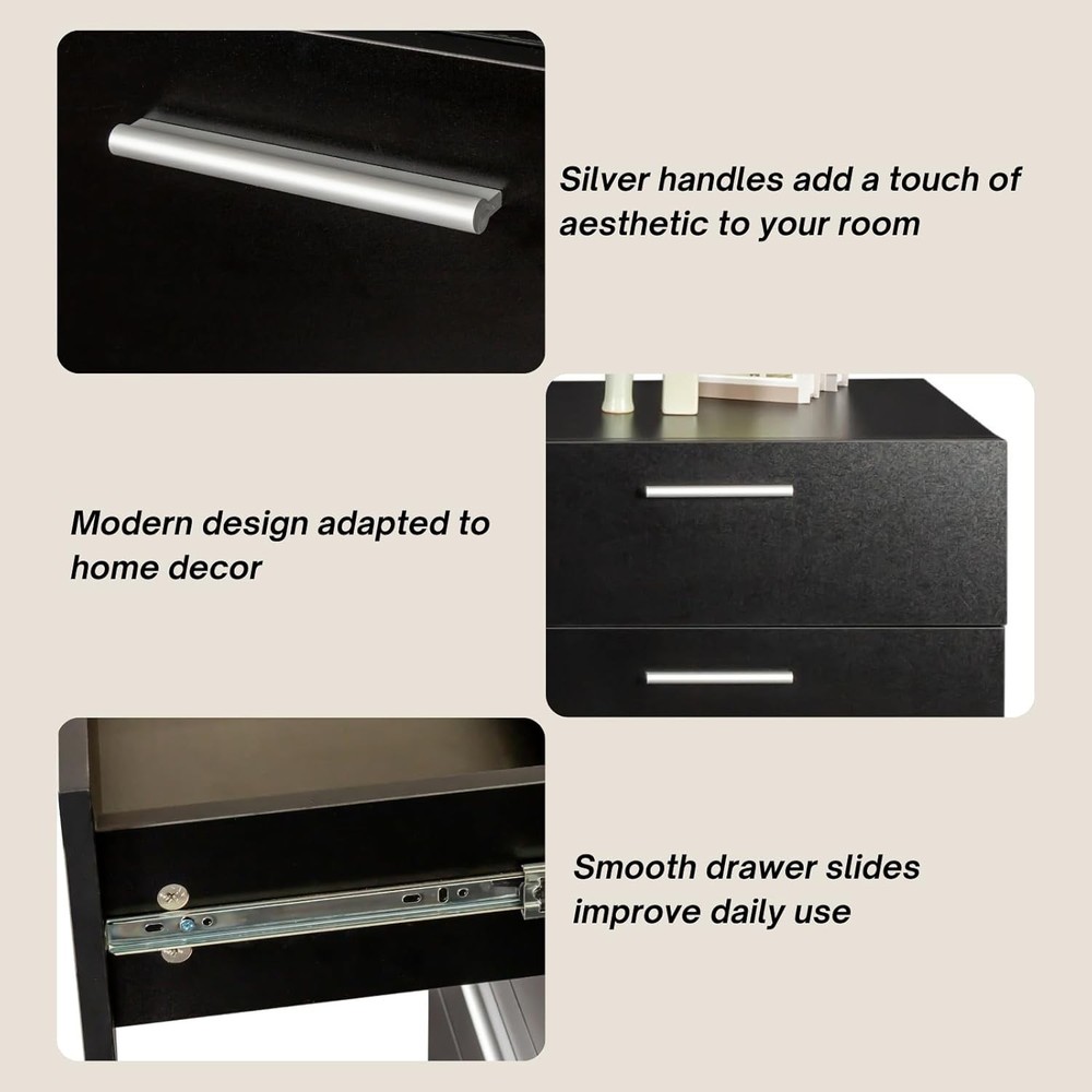 Product Description: 6 Drawer Double Dresser, a compelling blend of modern design and stellar functionality. Crafted from robust P2 class particle board, this dresser offers durability and strength for everyday use. Flaunting a chic white finish, it is an exquisite addition to your bedroom, living room, or entryway. Its wide drawers provide ample storage space for your belongings, ensuring your home stays clutter-free. Organize in style with this versatile piece that marries aesthetic appeal with practical utility. Features: Stable Construction: Manufactured from high-quality P2 class 15MM particle board, ensuring long-lasting durability and robustness. Elegant Black Finish: The sleek white finish adds a touch of sophistication and seamlessly blends with any home decor. Spacious Storage: Eight wide and deep drawers, each capable of holding up to 22 lbs, allowing you to store items of various sizes. Versatile Use: Ideal for the bedroom, living room, or entryway, offering a stylish solution for keeping your space tidy. Easy Assembly: comes with installation hardware and manual, anti-toppling accessories are also included Specifications: 1. Material: P2 Class 15MM Particle Board 2. Color: Black 3. Dimensions: 47.2"L x 15.7"W x 27.6"H 4. Drawer Size: 21.7"L x 13.8"W x 4.3"H 5. Single Drawer Weight Capacity: 22 LBS 6. Product Weight Capacity: 331 LBS Package Includes: 1 x 6 Drawer Double Dresser " On Aug 6, 2025 at 22:51:19 PDT, seller added the following information: