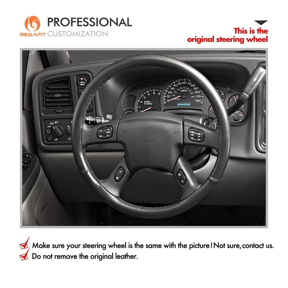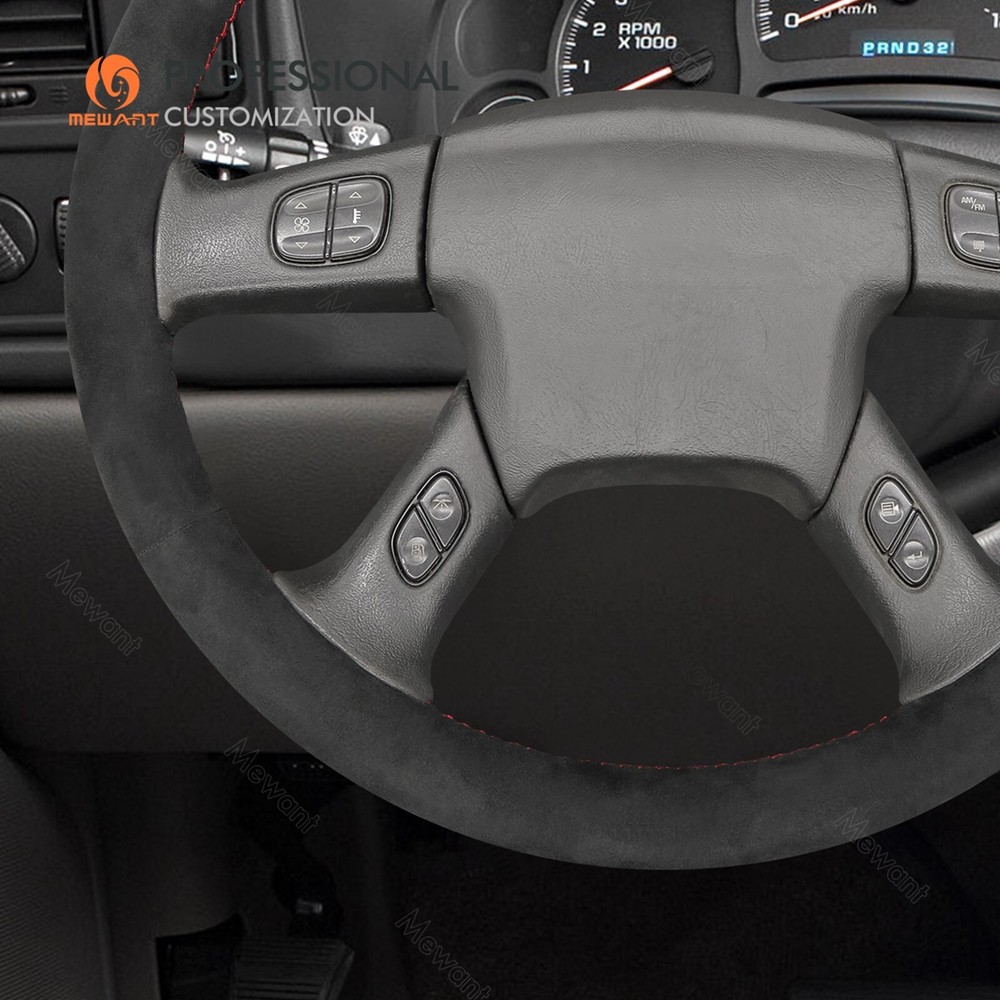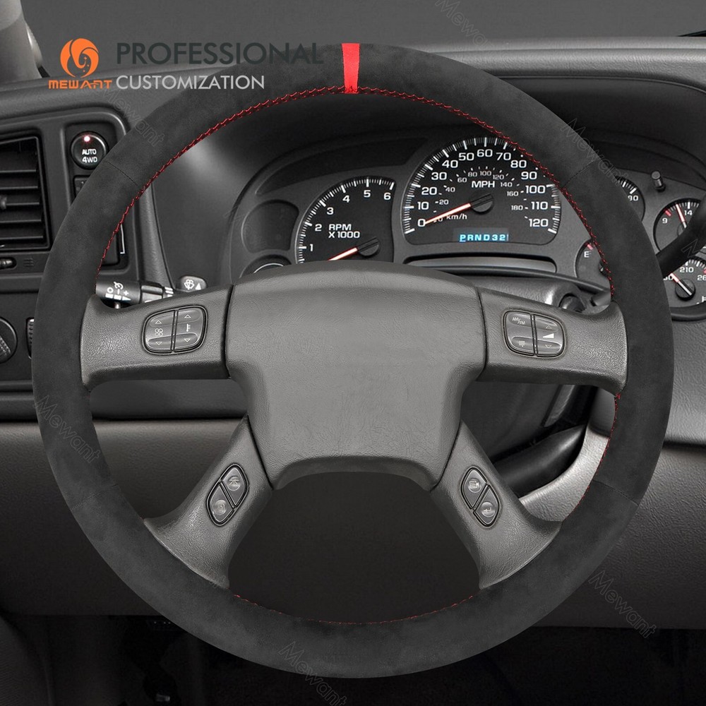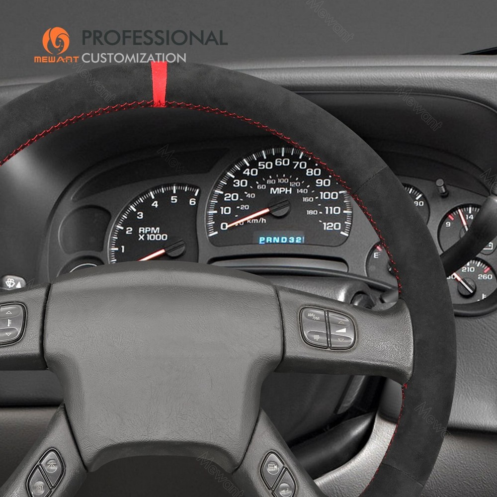Black Alcantara Steering Wheel Cover for Chevrolet Silverado 2003-2007 ONE Car ONE Template Factory buy brand new steering wheels from all over the world, to make the templates which could 100% fit the corresponding car model. Personalized customization Many colors of thread and material for choose to customize. According to the colors and materials you could customize a new style cover. Multiple protection With soft PU leather, guarantee a good grip while driving. With 100% fit Mewant cover, it won’t slip while driving. The Original Steering Wheel: NOTICE This cover Suitable car model: for Chevrolet (Chevy) Silverado 1500 2003-2006 / Silverado 1500 Classic 2007 / Silverado 2500 2003-2006 / Silverado 2500HD Classic 2007 / Silverado 3500 2003-2006 / Silverado 3500 Classic 2007 / TrailBlazer 2002-2009 for GMC Sierra 1500 2003-2006 / Sierra 1500 Classic 2007 / Sierra 2500 2003-2006 / Sierra 2500HD Classic 2007 / Sierra 3500 2003-2006 / Sierra 3500 Classic 2007 / Sierra 3500 CC Classic 2007 / Envoy 2002-2009 / Envoy XL 2002-2006 / Envoy XUV 2004-2005 / Yukon (Yukon XL) 2003-2006 Suitable car model name and launch year are just a reference, different countries have different model name and launch time, so please pay attention to the steering wheel picture above, make sure they are the same , if not sure, feel free to contact us. Default design: Design elements: A: Red Alcantara Stripe B+C+D: Black Solid Alcantara E: Red Thread If you want to change the material or color, please contact our customer service when you order. Feature * Increased Safety :High quality leather, super soft & smooth , non-slip & durable. it provides great grip on the steering wheel, massage your palm and relieve drive fatigue , bring you a great touch and feel . * Top Quality: delicate workmanship, super technology and flat sewing stitches, The steering wheel gloves are the perfect way to transform the look of your vehicles interior while protecting your original steering wheel at the same time from wear and tear. Self-installation Needed: Our steering wheel covers need to stitch by yourselves, the installation tools, video and instructions were provided to assistant, please do NOT remove the original leather before the installation, or it will not fit. Attachment:Needle,thread,double sided tape,yellow small blade