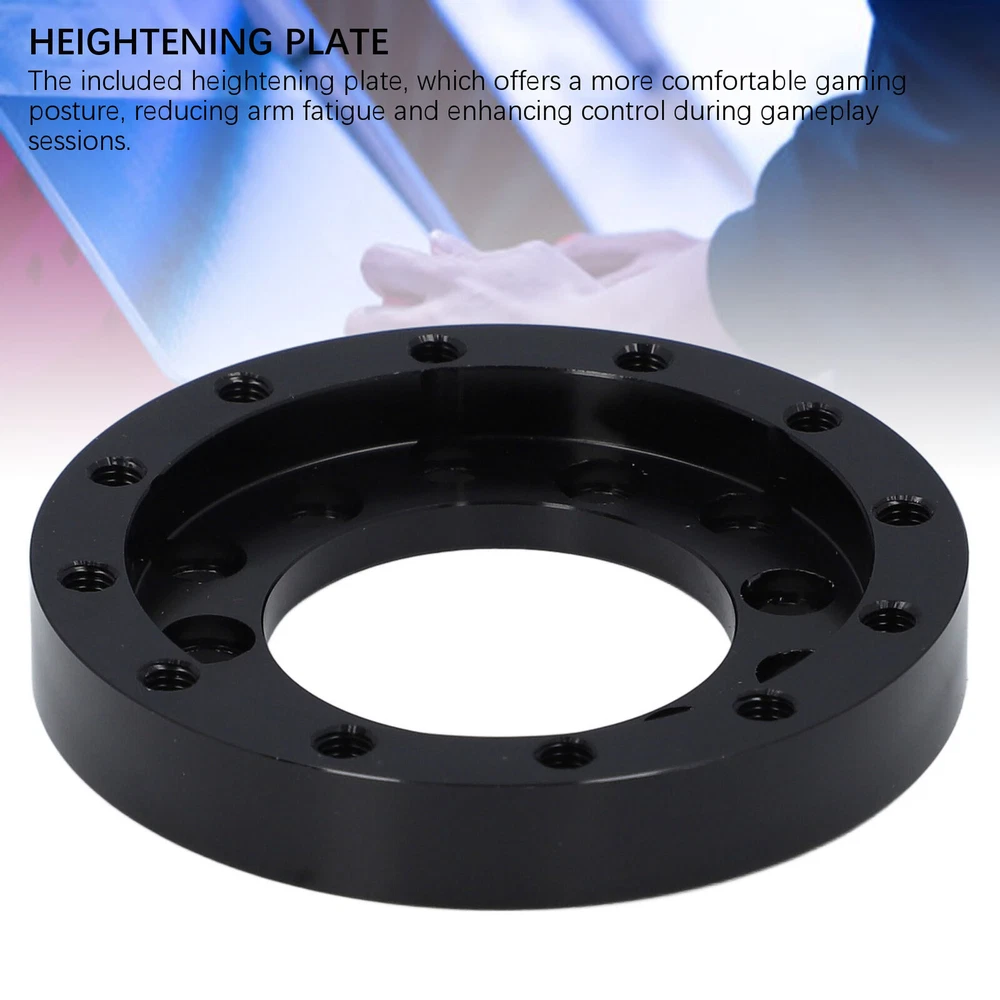 Feature: 1. CONVENIENT SWITCHING: Easily switch to this Alloy car gaming steering wheel adapter plate for an improved gaming experience with your for G25G27 racing steering wheel. 2. PRECISE DESIGN: Racing car gaming steering wheel adapter designed to fit perfectly for G25G27, this adapter plate is stable, robust, and ensures a precise and responsive gameplay. 3. HEIGHTENING PLATE: The included heightening plate, which offers a more comfortable gaming posture, reducing arm fatigue and enhancing control during gameplay sessions. 4. REALISTIC DRIVING EXPERIENCE: Immerse yourself in a more realistic racing simulation with this alloy steering wheel adapter plate, adding fun and challenge to your gaming experience. 5. EXCELLENT QUALITY MATERIAL: Crafted from high grade quality alloy, this adapter plate guarantees long term use without rusting, providing a accessory for your gaming setup. Specification: Item Type: Steering Wheel Adapter Plate Material: Alloy Application: for G25 for G27 Package List: 10 x Accessories