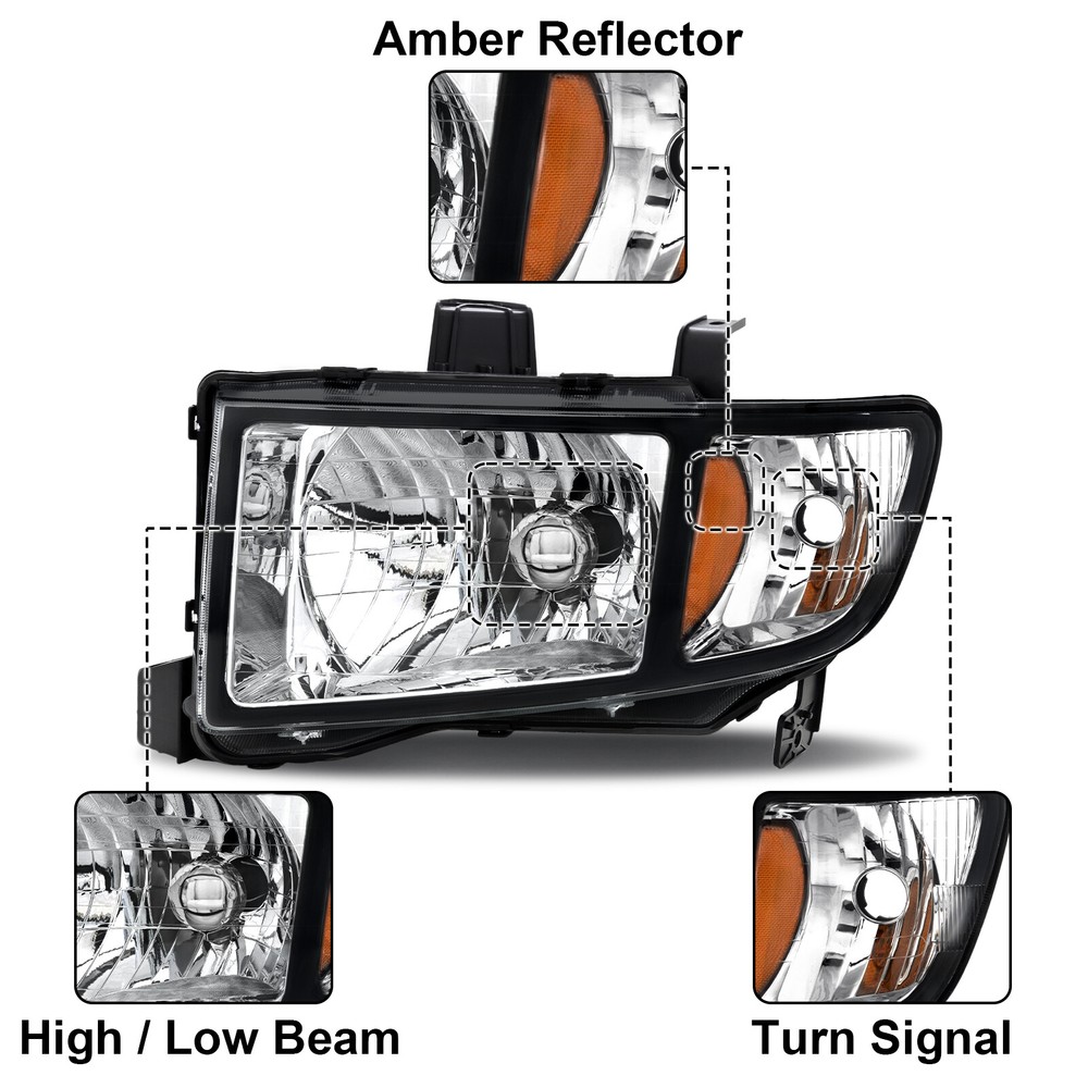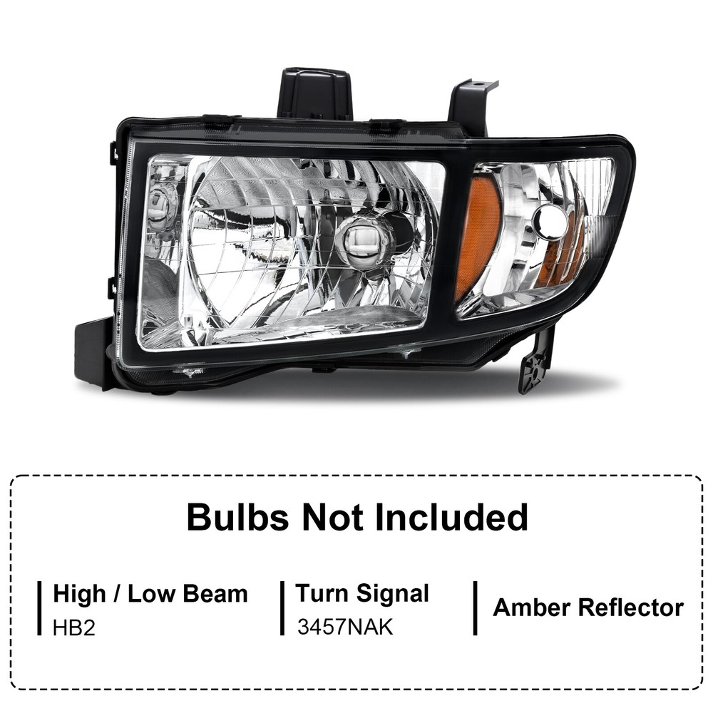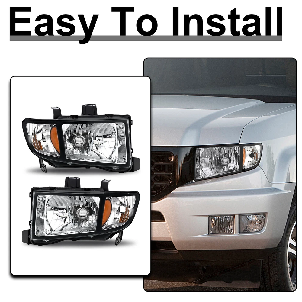 Pair Black Amber Headlights Assembly For 2006-2014 Honda Ridgeline LH and RH Features: 1.Direct replacement for stock assemblies 2.Comes in pairs with driver & passenger sides (left & right) 3.DOT and SAE compliant with quality meeting or exceeding OEM units 4.All Headlight Lenses come with anti-yellowing/ageing coating 5.1-Year limited warranty Specification: High/Low Beam Bulb: HB2 ( Bulbs are included ) Turn Signal Light: 3457NAK ( Bulbs are included ) Black Housing Clear Lens Amber Reflector Compatible with: 2006-2014 Honda Ridgeline Package includes: 1 Pair of headlights Payment Shiping Policy Returns Policy Feedback Contact us Payment We accept PayPal, Google Pay, Credit Cards, and Debit Cards. Shiping Policy All Orders Will Ship Within Two Business Days.Except PR,HI,AK,GU and PO Box addresses. No local pick up All Packages Will Be Inspect Before Shipping, We Will Provide All Packing Material Needed For Your Package For Shipping Such As Boxes, Cushioning And Tape To Improve Shipping Quality. Very Important: Double check shipping address. We are not responsible for incorrect or undeliverable addresses. Returns Policy 60 Days returns satisfaction guarantee. All of Our Items Are 100% Brand New. If The Item Shows Up Defective or Broken, Please Contact Us Within 3 Business Days By Using "Ask A Question" Link Located At The Bottom of Our Listing. Your Questions/Concerns Will Be Responded Within 12 Hours Monday To Friday. Buyers May Contact us On The Weekends or Pubic Holidays And We Will Respond On The Next Working Day. We Will Offer Replacements, Exchange or Full Refund. 100% Satisfaction Guaranteed. We Will File Damage Or Lost Claim For Our Buyers Feedback We will leave a positive feeback immediately after payment is received. We appreciate a positive feedback as much as you do. If you have any issue with order,pls. contact us before leaving a feedback. We will glad to resolve your issue.Your satisfaction is our priority. Contact us If you have any concerns, Pls. feel free to contact us at any time.