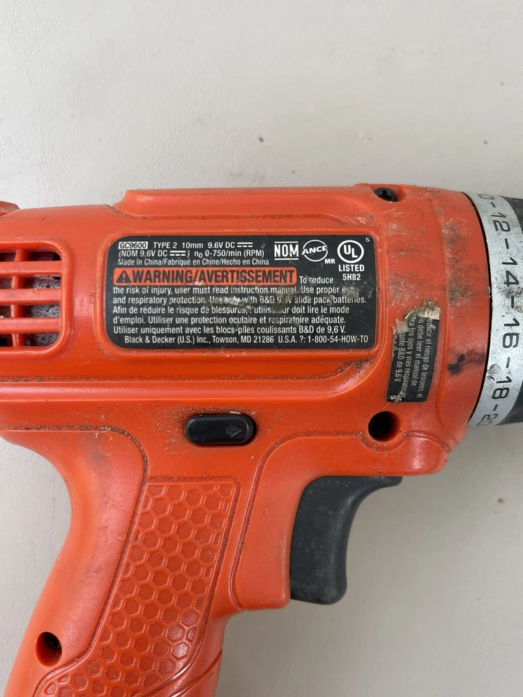 Introducing the Black and Decker 9.6v Drill GC9600, a powerful tool that offers a chuck size of 3/8 inches and a voltage of 9.6V. This drill set comes with one battery, which is included in the set. The battery is not charged, but it is still a great addition to the set. The drill set is manufactured in China and comes in an attractive orange color. It is perfect for home and garden projects and is classified under the cordless drills category in the Tools and Workshop Equipment section of Home Improvement. The set also includes a battery, making it a great value for the money.