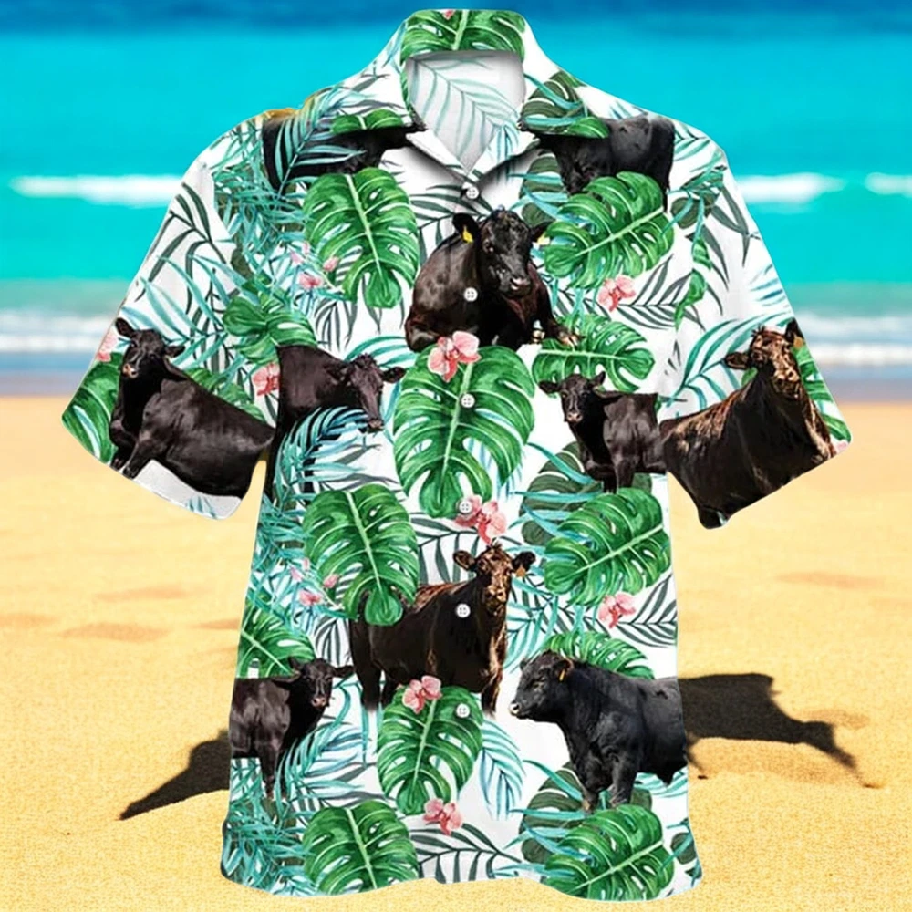 Black Angus Cattle Lovers Tropical Plant Hawaiian Shirt