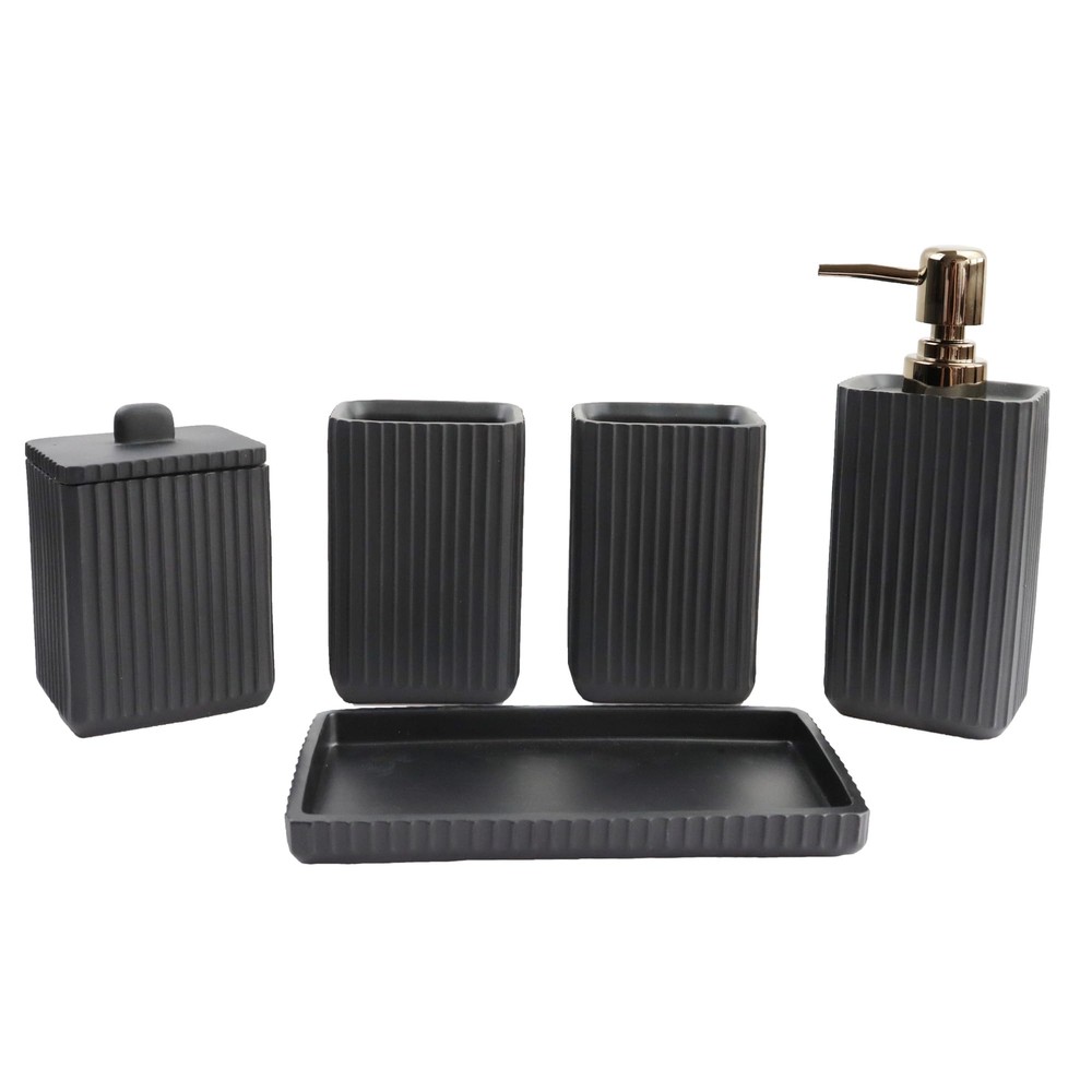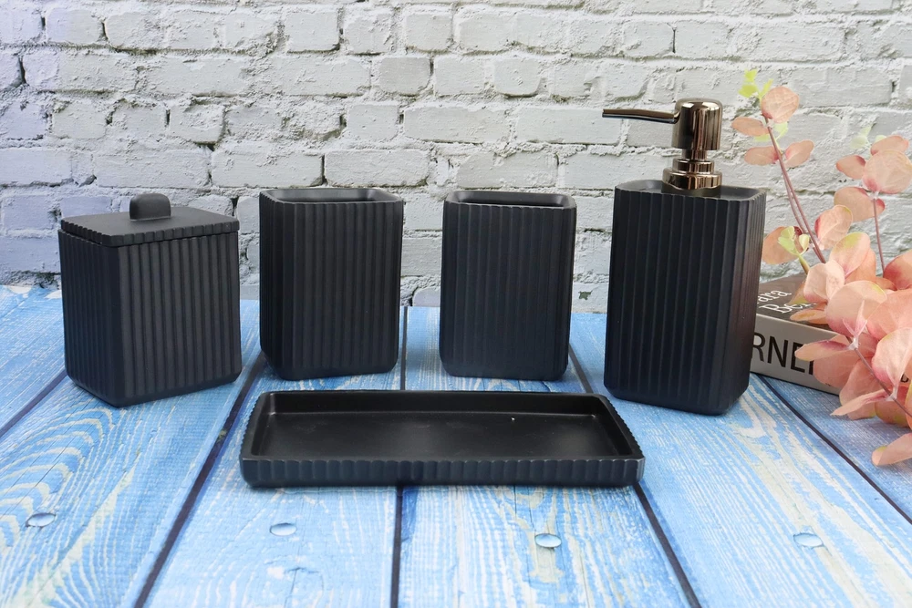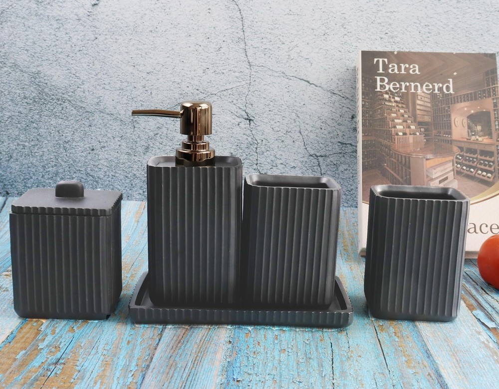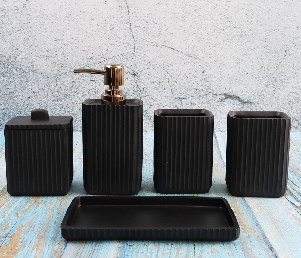 Hymmah Black Bathroom Accessories Set,Unique Design Bathroom Set 5 Pcs Resin Gift Set Apartment Necessities, Contain Cotton Swab Jar,Soap Dispenser,Soap Dish/Tray,Tumbler Simple and Fashion:Our bathroom sets are a fashion statement,with simple and stylist design and clear and smooth figure, fully showing the elegance and romance of modern life. Hand Engraved: Each detail was carved and painted on the beautiful and strong resin surface by artisan hands. Luxury Bathroom Accessories Set:Ideal decoration fits various styles,rustic decor, industrial style, western decor, morden style, contemporary decor, country decor. Ideal bathroom accessories set for home decor, bathroom decor, farmhouse decor. Great for the kitchen and bath, for countertop organize, vanity top, makeup table and craft. Practical for Use: it composed of various accessories with multiple functions and user-friendly,Fill your lotion,store your things, and the overall color scheme makes your bathroom look nice. Hymmah provides 100% product quality guarantee.If you have any question about the bathroom accessories set, please do not hesitate to contact us. All your questions will be replied within 12 hours. SHIPPING Domestic Buyers - We have confidence in our products, but if you are not fully satisfied please contact us within 30 days of purchase and you will get full refund. - We ship within 3 business days of payment, usually sooner - We offer FREE shipping on all orders! - We only ship to the lower 48 states, no APO/FPO addresses or PO Boxes allowed International buyers – please note: Import duties, taxes, and charges aren't included in the item price or postage cost. These charges are the buyer's responsibility. - Please check with your country's customs office to determine what these additional costs will be prior to bidding or buying. * Order Cancellation Policy ** You can return a product for up to 30 days from the date you purchased it. 1. The seller reserves the right to cancel the special case only due to eBay cancellation fee. 2. The decision of seller is the final. 3. The seller will respond to the cancellation request within 2 business days. Please wait for the result of cancellation. 4. In case the cancellation is not completed by some reasons, the buyer can follow the options below to get the refund. 4.1 The buyer can reject the item when it arrives. 4.2 The buyer can send the item back to the seller within 30 days If the buyer receives item (USA Shipment ONLY). The seller will provide the FREE return label to the buyer when the buyer opens " Return Item" case on eBay by using the reason as "Change my mind" ONLY. 5. When buyer has placed the order. The order will be processed and completed by automatic warehouse system within 5 minutes. In case that buyer sends the cancellation request after 5 minutes of placing the order, the request will be rejected. **Sending direct message to cancel the order is not allowed for every case.* Return Policy For the return case - If buyer would like to return the items for refund or replacement, please CONTACT SELLER to receive the free return label from seller. The refund or replacement will be processed with the tracking number of return label which is provided by seller only. The other ways of return which are not approved by seller will not be processed for the refund or replacement.