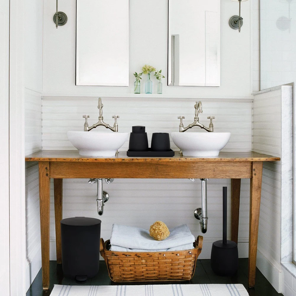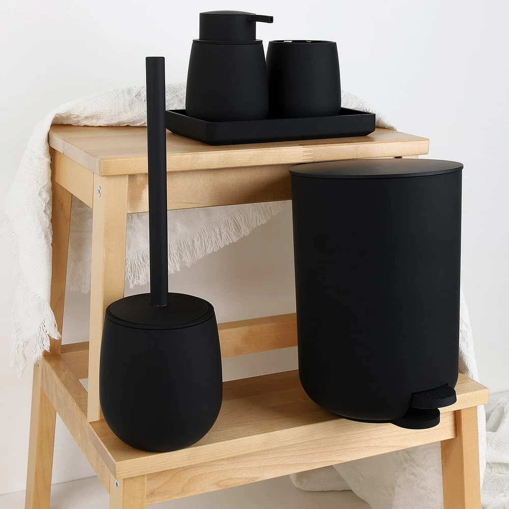 GAHEFY Black Bathroom Accessories Set with Small Trash Can 3 Liter/0.8 Gallon,Toothbrush Holder,Soap Dispenser,Vanity Tray,Toilet Brush and Holder Black 5pcs COMPACT MINI TRASH CAN: This small trash can comes with a lid and a removable liner, providing a capacity of only 3 liters/0.8 gallons. It is perfect for narrow spaces like bathrooms, dorm rooms, apartments, offices, RVs, desks, countertops, or corners. Please ensure to check the size before placing your order. 5 Pcs Bathroom Accessories Set Complete: This black bathroom kit includes a small trash can with a lid, a toilet brush with a holder, a short soap dispenser, a toothbrush holder, and a vanity tray. All components are easy to clean with water. Premium Quality: This black bathroom accessories set is crafted from high-quality ABS resin, ensuring there is no odor. It features a matte black rubber paint finish, providing a soft touch and adding a touch of sophistication to your bathroom. Compared to cheaper plastic alternatives, it elevates the overall ambiance, giving your bathroom a sense of luxury. Bathroom Decor: This product boasts a modern and minimalist design that complements most bathroom styles. The set includes a soap dispenser, toothbrush holder, and a vanity tray, which help keep your bathroom countertop clean, tidy, and organized. Great Gift Idea: This black bathroom trash can and toilet brush set makes an excellent choice for housewarming gifts, wedding gifts, and birthday gifts. If you encounter any issues or have any questions about this adorable bathroom accessories set, please feel free to leave us a message. Our customer service team will be happy to assist you. SHIPPING Domestic Buyers - We have confidence in our products, but if you are not fully satisfied please contact us within 30 days of purchase and you will get full refund. - We ship within 3 business days of payment, usually sooner - We offer FREE shipping on all orders! - We only ship to the lower 48 states, no APO/FPO addresses or PO Boxes allowed International buyers – please note: Import duties, taxes, and charges aren't included in the item price or postage cost. These charges are the buyer's responsibility. - Please check with your country's customs office to determine what these additional costs will be prior to bidding or buying. * Order Cancellation Policy ** You can return a product for up to 30 days from the date you purchased it. 1. The seller reserves the right to cancel the special case only due to eBay cancellation fee. 2. The decision of seller is the final. 3. The seller will respond to the cancellation request within 2 business days. Please wait for the result of cancellation. 4. In case the cancellation is not completed by some reasons, the buyer can follow the options below to get the refund. 4.1 The buyer can reject the item when it arrives. 4.2 The buyer can send the item back to the seller within 30 days If the buyer receives item (USA Shipment ONLY). The seller will provide the FREE return label to the buyer when the buyer opens " Return Item" case on eBay by using the reason as "Change my mind" ONLY. 5. When buyer has placed the order. The order will be processed and completed by automatic warehouse system within 5 minutes. In case that buyer sends the cancellation request after 5 minutes of placing the order, the request will be rejected. **Sending direct message to cancel the order is not allowed for every case.* Return Policy For the return case - If buyer would like to return the items for refund or replacement, please CONTACT SELLER to receive the free return label from seller. The refund or replacement will be processed with the tracking number of return label which is provided by seller only. The other ways of return which are not approved by seller will not be processed for the refund or replacement.