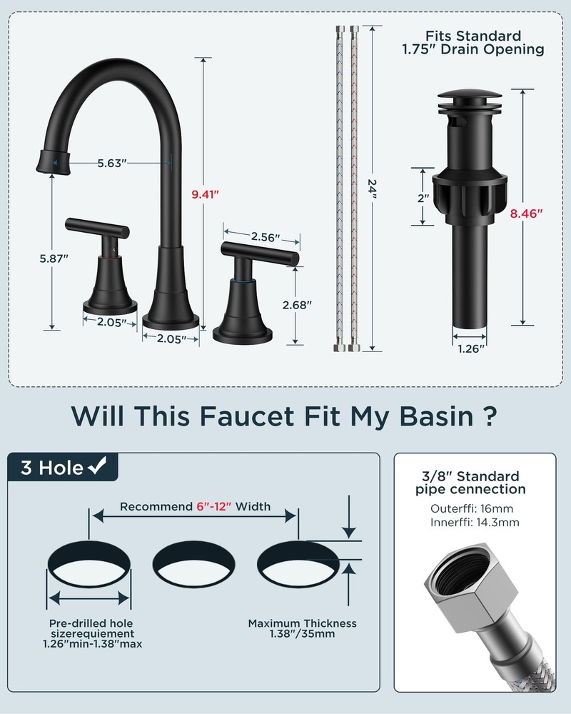2 handle bathroom faucet 2 handle widespread bathroom faucet 3 hole bathroom faucet black 3 hole bathroom sink faucet 3 hole faucet bathroom 3 hole sink faucet bathroom 3 piece bathroom faucet black 3 piece faucet bathroom for sink 6 inch bathroom faucet 8 bathroom sink faucet 8 faucet bathroom 3 hole 8 in bathroom faucet 8 in widespread bathroom faucet 8 inch black bathroom faucet 8 inch faucet for bathroom sink 8 inch sink faucet bathroom 8 inch spread bathroom faucet 8 inch widespread bathroom faucet 8 inch widespread bathroom faucet black 8 spread bathroom faucet 8 vanity faucet black 8 widespread bathroom faucet 8in bathroom faucet black 8in spread bathroom faucet ada compliant bathroom sink american standard bathroom faucet bath faucets for sink bath sink faucet bathroom black faucet bathroom black faucets bathroom facet 3 holes bathroom faucet bathroom faucet 3 hole black bathroom faucet 3 holes bathroom faucet 8 inch spread bathroom faucet 8 inch widespread bathroom faucet black 3 hole bathroom faucet mat bathroom faucet matte black bathroom faucet set bathroom faucet with drain bathroom faucet with pop up drain bathroom faucets bathroom faucets 3 hole bathroom faucets black bathroom faucets for sink bathroom faucets for sink 3 hole bathroom faucets for sink 3 hole black bathroom faucets matte black bathroom faucets widespread bathroom makeover bathroom sink faucet 3 hole wide set bathroom sink faucet 8 inch bathroom sink faucet black bathroom sink faucet mat bathroom sink faucet matte black bathroom sink faucet set bathroom sink faucet widespread bathroom sink faucet widespread black bathroom sink faucet with drain bathroom sink faucets bathroom sink faucets 3 hole bathroom sink splash guard 3 hole faucet bathroom vanity faucet bathroom vanity faucets bathroom vanity faucets 3 hole bathroom widespread faucet black 3 hole bathroom faucet black 3 piece faucet bathroom black 8 inch bathroom faucet black 8 spread bathroom faucet black bath faucet black bathroom faucet 3 hole black bathroom faucet 8 inch spread black bathroom faucet set black bathroom faucets black bathroom faucets 3 hole black bathroom sink faucet black bathroom sink faucet 3 hole black faucet 3 hole black faucet bathroom 3 hole black faucet bathroom matte black faucet bathroom sink black faucet for bathroom black faucet for bathroom sink black faucets for bathroom sink black matte bathroom faucet black matte faucet bathroom black restroom faucet black sink 3 piece faucet black sink faucet bathroom 3 hole black vanity faucet black widespread bathroom faucet bthroom faucets camper bathroom faucet camper bathroom sink faucet camper faucet bathroom commercial bathroom faucet face basin faucet for bathroom sink facet for bathroom sink farmhouse bathroom faucet faucet faucet 8 inch spread faucet bathroom faucet bathroom 3 hole faucet bathroom sink faucet for bathroom faucet for bathroom sink 3 hole faucet for bathroom sink black faucet for bathroom sink widespread faucet mat for bathroom sink faucet mat for bathroom sink 3 holes faucet sink bathroom faucets for bathroom sinks fosette bathroom grifería para baño grifo de baño grifo para lavamanos baño grifos para lavamanos de baño lavamanos para baños lavatory faucet llave de lavamanos de baño llave para lavamanos llave para lavamanos de baño llaves de lavamanos para baño llaves para lavamanos de baño matt black bathroom faucet matt black bathroom faucet 3 hole matte black bathroom faucet 3 hole matte black bathroom sink drain matte black bathroom sink faucet matte black faucet 3 hole matte black faucet bathroom matte black faucet for bathroom sink matte black ro faucet matte black sink faucet matte black sink faucet bathroom matte black wide spread bathroom faucet modern bathroom faucet modern bathroom faucet 3 hole modern bathroom sink faucet modern faucet bathroom modern faucet for bathroom sink restroom faucet restroom faucets for sink restroom sink faucet rotatable bathroom faucet rotatable faucet bathroom rv bathroom faucet rv bathroom sink faucet sink bathroom faucet sink faucet bathroom sink faucet bathroom 3 hole sink faucet for bathroom sink faucets bathrooms stainless steel bathroom faucet swivel bathroom faucet swivel faucet for bathroom sink tall 3 hole bathroom faucet tall bathroom faucet tall bathroom sink faucet tall faucet for bathroom sink three hole bathroom faucet three hole faucet for bathroom sink three hole sink faucet bathroom two handle bathroom faucet vanity faucet vanity faucet 3 holes vanity faucet black rv bathroom faucet rv bathroom sink faucet wide set bathroom faucet black widespread 8 in. 3-hole vanity faucets black widespread bathroom faucet black widespread bathroom faucets wide-spread bathroom faucets widespread faucet for bathroom sink widespread faucets camper bathroom faucet CONFIDENC: The bathroom faucets 3 hole is made of stainless steel and meets cUPC, CEC, NFS standards. Our own production factory allows us to better control the details and quality of seemingly identical taps, resulting in high-quality, but cost-effective black faucet bathroom QUALITY: The drip-proof ceramic cartridges have passed 500,000 waterproof tests to ensure durability, and easy-to-separate control of flow and temperature. You can install the hot or cold handle on the left or right side according to your usage habits USER-FRIENDLY: The 360° swivel high arc gooseneck black bathroom faucet provides an additional operating space and flush range. The extra spare 1.2 GPM Spare Aerator for your choice, saves 25% water without sacrificing performance.Flow rate: 1.2gpm/4.5L/min at Max 60psi CUPC HOSE: The 3 hole bathroom faucets integrated InnoFlex PEX supply line, wrapped in 24" braided Flexible hose, explosion-proof and high temperature. The US standard pipe connection 3/8 thread with built-in rubber ring effectively avoids leakage COMPATIBILITY: The vanity faucet 3 holes can be installed on sink between 6-12 inches, to achieve a more customized wide 