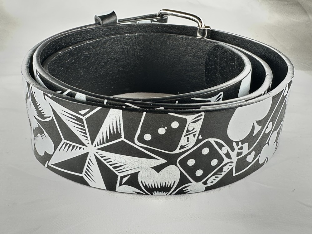Add a pop of style and personality to your wardrobe with our Monochromatic Casino Leather Belt – the ultimate statement accessory for men and women alike. Made from genuine leather, this belt combines durability with eye-catching style, featuring a bright white graphic design that makes it perfect for casual wear, festivals, and daily fashion. The high-quality metal buckle offers a secure fit while complementing the bold pattern for a clean, polished look. Whether you're pairing it with jeans, shorts, or adding a fun twist to dresses and skirts, this belt is sure to stand out and turn heads. Available Sizes: Small: 30"-32" Medium: 34"-36" Large: 38"-40" X-Large: 42"-44" Perfect for both men and women, this versatile belt makes a fantastic gift for friends, family, or anyone who loves fun, unique accessories. Bring color, comfort, and confidence to your outfit with a belt that’s as stylish as it is sturdy. Key Features: ✅ Made from genuine leather for durability and long-lasting wear ✅ Bright white graphics on black design for a bold fashion statement ✅ Secure and stylish metal buckle closure ✅ Unisex – suitable for men, women, and teens ✅ Available in multiple sizes for the perfect fit ✅ Great for casual outfits, festivals, and everyday wear