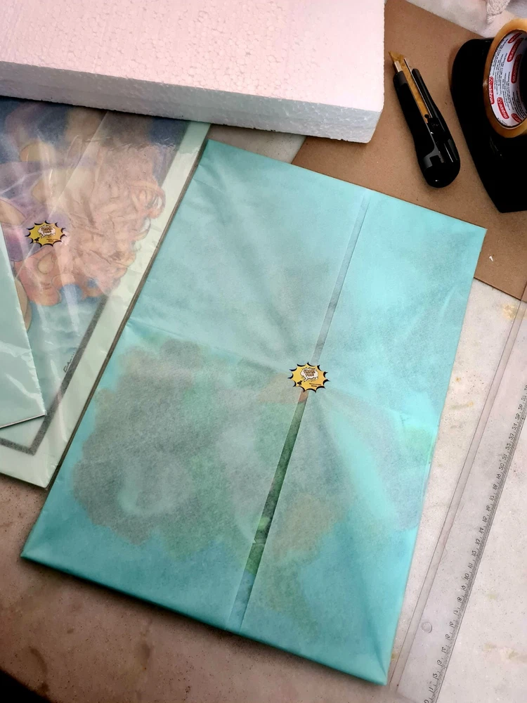 Great international transaction. This original art was packed by its seller/artist extremely well using several slabs of durable styrofoam with the artwork, itself, placed into a polybag and kept rigid with a piece of dense stiff board. All of this was wrapped into a tough little package which survived both the international and domestic post. Artwork was as described with no damage whatsoever thanks to the precautions the seller took during preparation. Quick turnaround & A1 service
