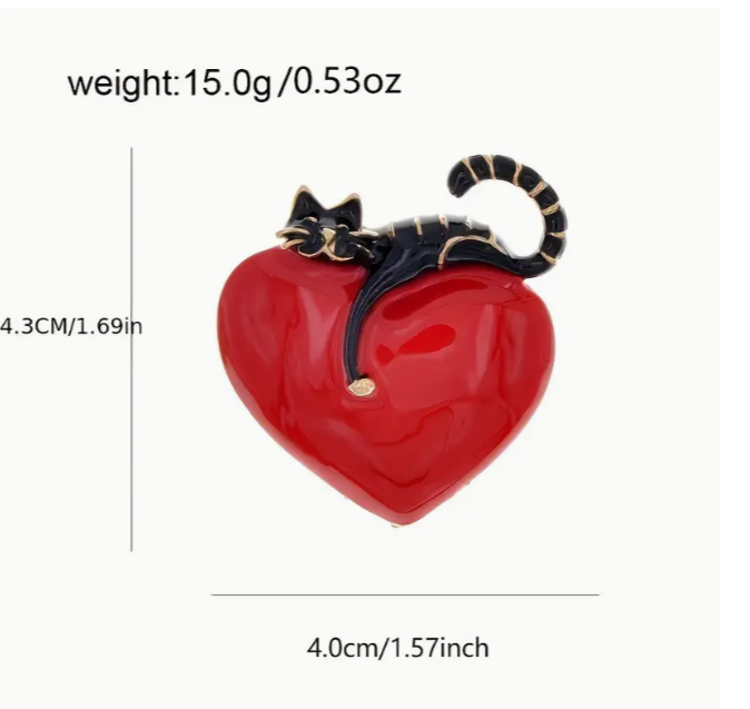 This beautiful black cat pin brooch is a must-have for any fashion jewelry lover. Measuring 1.7 inches in length, it is the perfect size to wear on any occasion, from weddings to graduations. The round rhinestone adds a touch of sparkle to this stunning piece, which features a heart-shaped design and a unique cat shape. The brooch is perfect for those who love animals and insects, as well as those who enjoy customized and unique jewelry. It is made from high-quality materials, although the specific metal and rhinestone materials are not currently known. This brooch is a great gift for birthdays, Valentine's Day, Mother's Day, and Father's Day. Add a touch of love and elegance to your outfit with this beautiful black cat pin brooch.