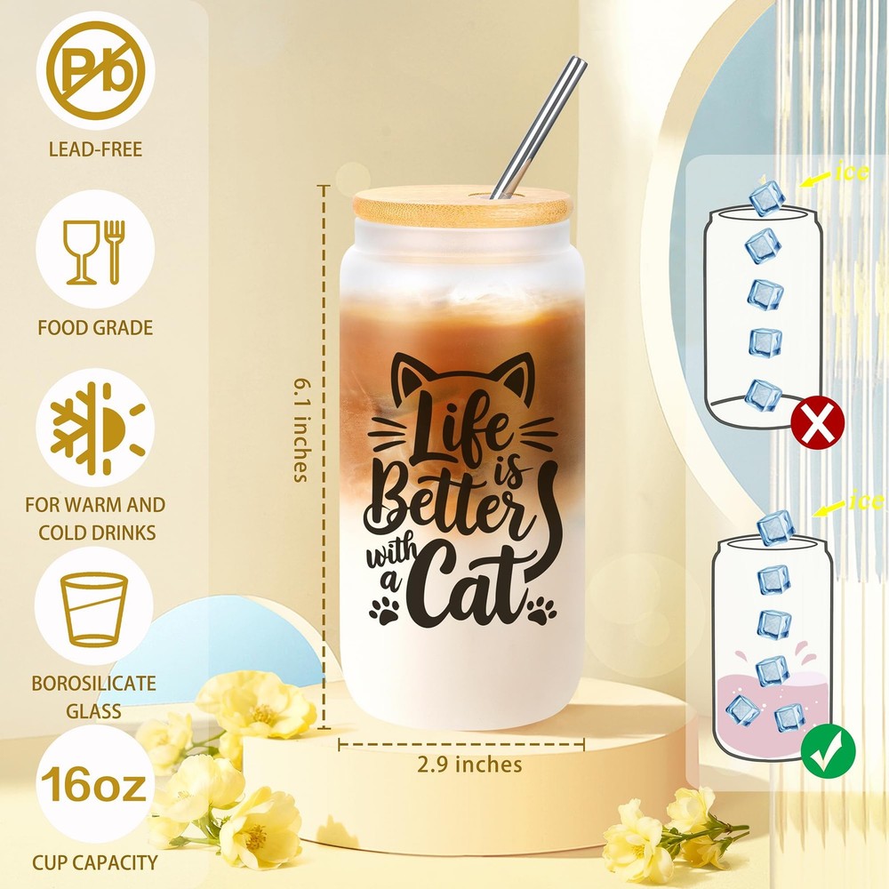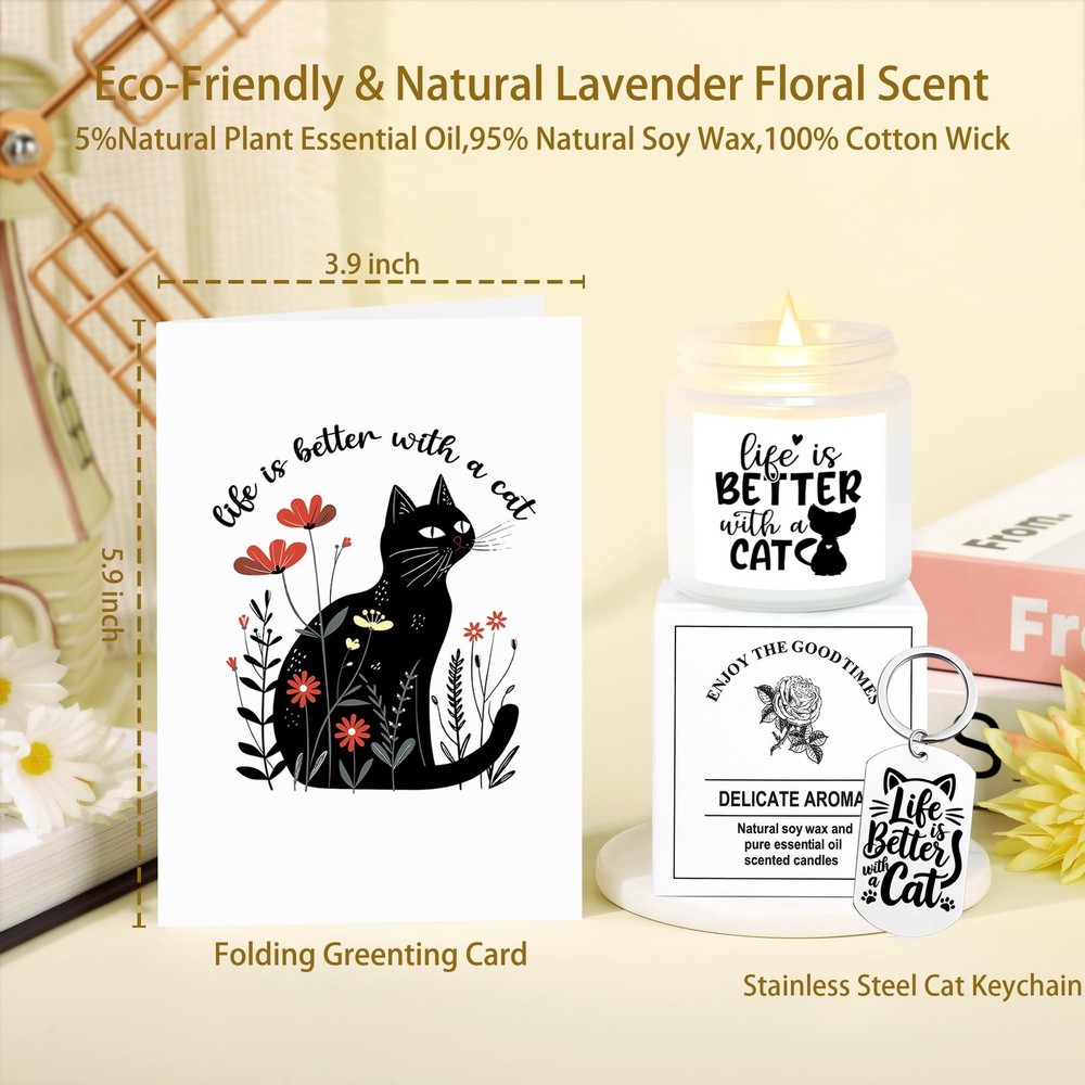 Black Cat Lover Gifts for Women This adorable black cat gift set consists of 7 different gifts: 1 x stylish tote bag, 1 x 16oz can glass with lid and straw, 1 x printed black cat makeup bag, 1 x lavender scented cand*e, 1 x pair of cute socks made of pure cotton, 1 x stainless steel cat themed keychain, 1 x beautifully patterned greeting cards in which you can down any words you want to say to her. Gifts for Cat Lovers for Women Our black cat gifts set is a suitable cat gift for cat lovers, these are functional gifts for women who live and breathe all things feline. Whether it's Mother's Day, Birthday, Valentine's Day,Christmas, Thanksgiving, International Cat Day,or any other time of the year,this cat gift box is sure to be a hit with every cat lovers. 【Black Cat Lover Gifts for Women】This adorable black cat gift set consists of 7 exquisite items.There are 7 different gifts in the box: 1 x stylish tote bag, 1 x 16oz can glass with lid and straw, 1 x printed black cat makeup bag, 1 x lavender scented cand*e with a black cat, 1 x pair of cute socks made of pure cotton, 1 x stainless steel cat themed keychain, 1 x beautifully patterned greeting cards in which you can down any words you want to say to her. 【Item Details】The cat-themed tote bag is made of cotton canvas and double-sided fashion printing will not fade in long-term use. Our glass cups combine stylish design with practical use. It is easy to clean and won't change the taste of your various drinks. The canvas makeup bag is simple and stylish, double-sided printing, with a large capacity to hold your daily necessities, which serves to protect your items and make it easy to carry as well as keep them organized. 【Meaningful Gifts for Cat Lovers】Our cozy cat socks feature the phrases "I CAN'T GET UP RIGHT NOW" and "THE CAT IS ON MY LAP". The durable stainless steel keychain is engraved with the message "Life is Better with a Cat". The set also includes a beautiful greeting card that you can personalize with your own message. These funny cat-themed designs make it the top gifts set for cat lovers. 【Cat Themed Gifts】Looking for unique and funny black cat gifts for women? These black cat gifts for women are excellent way to express your thanks or love to cat lovers. It's an ideal choice for black cat lovers, as well as anyone who enjoys cute, and functional gifts. Whether it's during festivals or a special day or just everyday life, this black cat gift box is sure to be a hit with every cat lovers. 【Satisfactory Service】 In order to let you have a better shopping experience. If you have any questions about our products, we will do our best to make you satisfied.