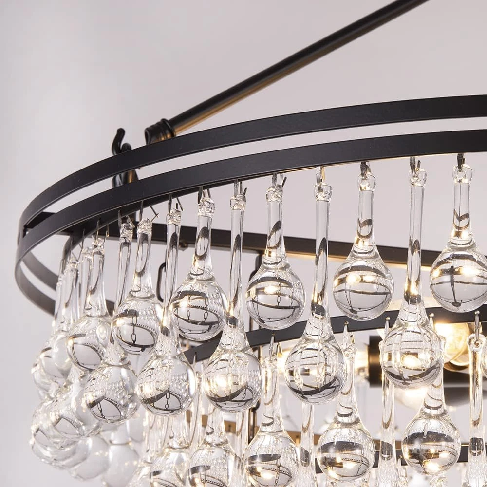 Store New Arrivals Add to Favorite View Feedback Contact Black Crystal Chandelier 24 Inch, Modern Farmhouse Light Fixtures Ceiling Hanging Crystal Pendant Lighting for Dining Room, Kitchen Island, Living Room, Bedroom, 3 Tiers Description Light Source Type LED Style Modern Number of Items 1 Power Source Corded Electric Fixture Type Non Removable Number of Light Sources 6 Control Method App Embellishment Crystal Batteries Included? No Lighting Method Downlight Controller Type Push Button Unit Count 1.0 Count Room Type Entryway, Kitchen, Bedroom, Living Room, Dining Room Assembly Required Yes Product Dimensions 23.6"L x 23.6"W x 60"H Material Metal Collection crystal chandelier Installation Type Hanging, Ceiling Mount Finish Type Matte Black Specific Uses For Product Indoor use only Included Components Mounting Hardware Indoor/Outdoor Usage Indoor Water Resistance Level Not Water Resistant Batteries Required? No Warranty Type Limited Item Weight 26.9 pounds Light fixture form Chandelier Special Features Dimmable Special Feature Dimmable Bulb Base E12 Shade Color black Mounting Type Hanging,Ceiling Mount Color Black Wattage 360 watts Shape Round Voltage 110 Volts Plug Format A- US style Shade Material Crystal Finish types Matte Black Switch Type Push Button Black Chandelier with Crystal Accents: This 6-light tiered chandelier is the perfect pick for bringing brightness and glamour to your entryway or living room. It showcases three tiers of crystal accents, while the metal frame boasts a matte black finish for contrast Crystal Chandelier Dimensions: Overall-23.6 inches Dia x 60 inches H; Chain Length- 35.4inches, length adjustable, suit for flat or slope ceiling Easy Installation: All mounting hardware and a detailed mounting instructional manual are included. It requires assembly and took a little time to put on all the crystals but it is so worth it since the light is stunning Bulbs Requirement: Bulbs are not included. The crystal chandelier lighting requires 6 x E12 base bulbs (Max 60W for each light). Fully dimmable when used with a dimmer bulb and compatible dimmer switch(not included), the adjustable chandelier allows you to control desired brightness for your different needs Wide Application: The black chandelier is suitable for kitchen island, dining room table, living room, hallway, laundry room, bedroom, entryway, stairway, foyer, guest room, etc Product Description TOCHIC BLACK CRYSTAL CHANDELIER Round Crystal Chandelier Light Fixture Why not bring home a pendant that has all the charm of something elegant? This 6-light tiered chandelier is the perfect pick for bringing brightness and glamour to your entryway or living room. It has a matte black finish, and is made up of rows of teardrop crystals. Features Matte black finish crystal chandelier Two types of crystals Adjustable height All parts are well-packaged The fixture needs to be hard-wired Professional installation is recommended Specifications Dimensions: Overall: 23.6 in Dia x 60.1 in H Canopy: 4.72 in Dia x 1 in H Lighting Dimensions Light Fixture Diameter: 23.6" Light Fixture Height: 21.26" Chain Length: 35.4" Maximum Height: 60.1" Minimum Height: 24.7" Number of Lights: 6 (Bulbs Not Included) Bulb Base: E12 Bulb Included: No Maximum Watts (per Bulb): 60W Bulb Type: LED, Incandescent, CFL, Halogen, and Edison Notes: Please check the dimension of the lights before you order. Please carefully check the installation instructions. Ensure the chandelier is disconnected from the mains power before installation. Two Different Crystals The crystal's design is 2 different patterns- longer teardrops and shorter teardrops. (You do have to put every crystal on individually but the reward it sheer beauty) The light shimmers through the crystals and looks beautiful. Sparkle Crystal Ceiling Light The dramatic sparkle - and often dramatic form - of crystal ceiling light fixtures make a great first impression in entryways, and hallways. Hundreds of clear glass drop crystals surround this beautiful chandelier. With 6 lights and a beautiful round frame, this chandelier is sure to light up your home. Space Application crystal chandeliers for kitchen crystal chandeliers for dining room crystal chandeliers for bedroom ABOUT US We offer the best prices around on high quality products. Our E-store includes media such as books, movies, music and games while offering electronics, toys, sporting apparel, clothing, tools, general home, garden items and more. SHIPPING We are always working hard to ensure your package arrives as soon as possible. Please understand that some factors like weather, high postal traffic, and the performance of shipping companies are outside of our control. We offer free shipping to the lower 48 states and ship within 2 business days of payment, usually sooner. We do not accept P.O. Boxes. Please provide a physical address. For shipping outside of the continental USA, we only use eBay's Global Shipping Program.The item is shipped to KY and then sent to the rest of the world. International customers are responsible for all duties and taxes. Continue to check out in order to calculate costs for shipping the item to your country. Messages regarding eBay's Global Shipping Program MUST be directed at eBay EXCLUSIVELY. RETURNS We offer a 30-Day Return Policy on items which you are not completely satisfied with. You have the option for a full-refund or an exchange of the item. No returns are available on items shipped outside of the USA. PAYMENT We accept PayPal. CONTACT US This page content is yet to come Please ad us to your favorite seller and visit again later Thank You CUSTOMER SATISFACTION We try our very best to make sure every customer is completely satisfied. If there's a problem, message us! We're happy to help. WE ACCEPT Copyright © 2021 AutoDS. | All Rights Reserved