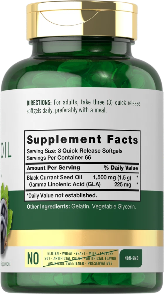 Little Seed with Large Benefits: Black Currant (Ribes nigrum) is a deciduous plant with edible berries and highly potent seeds. It is a main staple to holistic wellness practices around the world, and a notorious source of Omega-6 fatty acid GLA. In European traditions dating back to the 17th century, Black Currant bark and root was used to make herbal tea. Today, it can be found in many supplement forms, commonly extracted as a nutritional oil. Carlyle Black Currant Oil Softgels: Enjoy the benefits of this fantastic herb now with Carlyle Black Currant Oil! This gluten-free and non-GMO nutritional supplement provides 1,500 mg of Black Currant Seed Oil per serving, with 225 mg of naturally occurring GLA. Quick-release softgels provide the powerful nutritional support you need from this little seed, tested for purity & potency! Carlyle Black Currant Oil — Rooted in Wellness: Our expertise in sourcing the purest ingredients combined with advanced technologies makes us proud to deliver premium, honest supplements at the best value. Our Black Currant Oil supplement is a testament to our commitment to excellence, made with powerful ingredients rooted in wellness. Thanks for choosing us in your pursuit of living healthy!