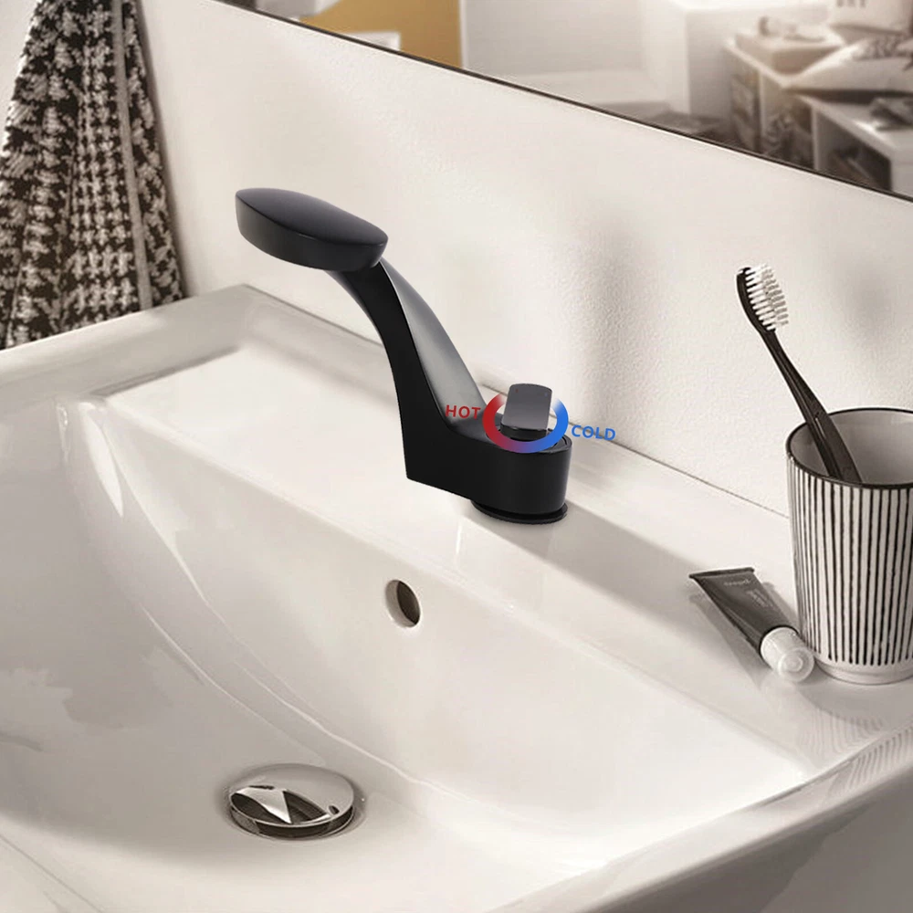 Black Curved Design 1-Handle Mixer Tap Faucet for 80Pa Water Pressure