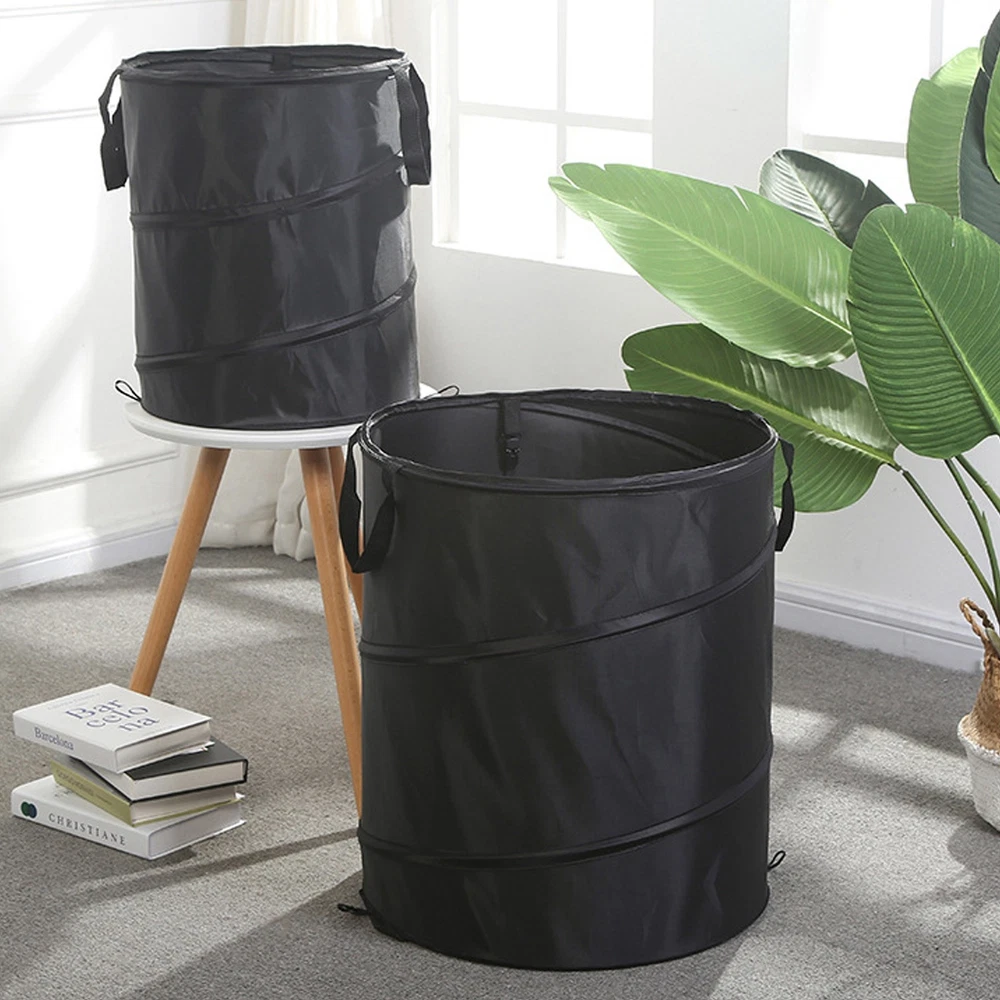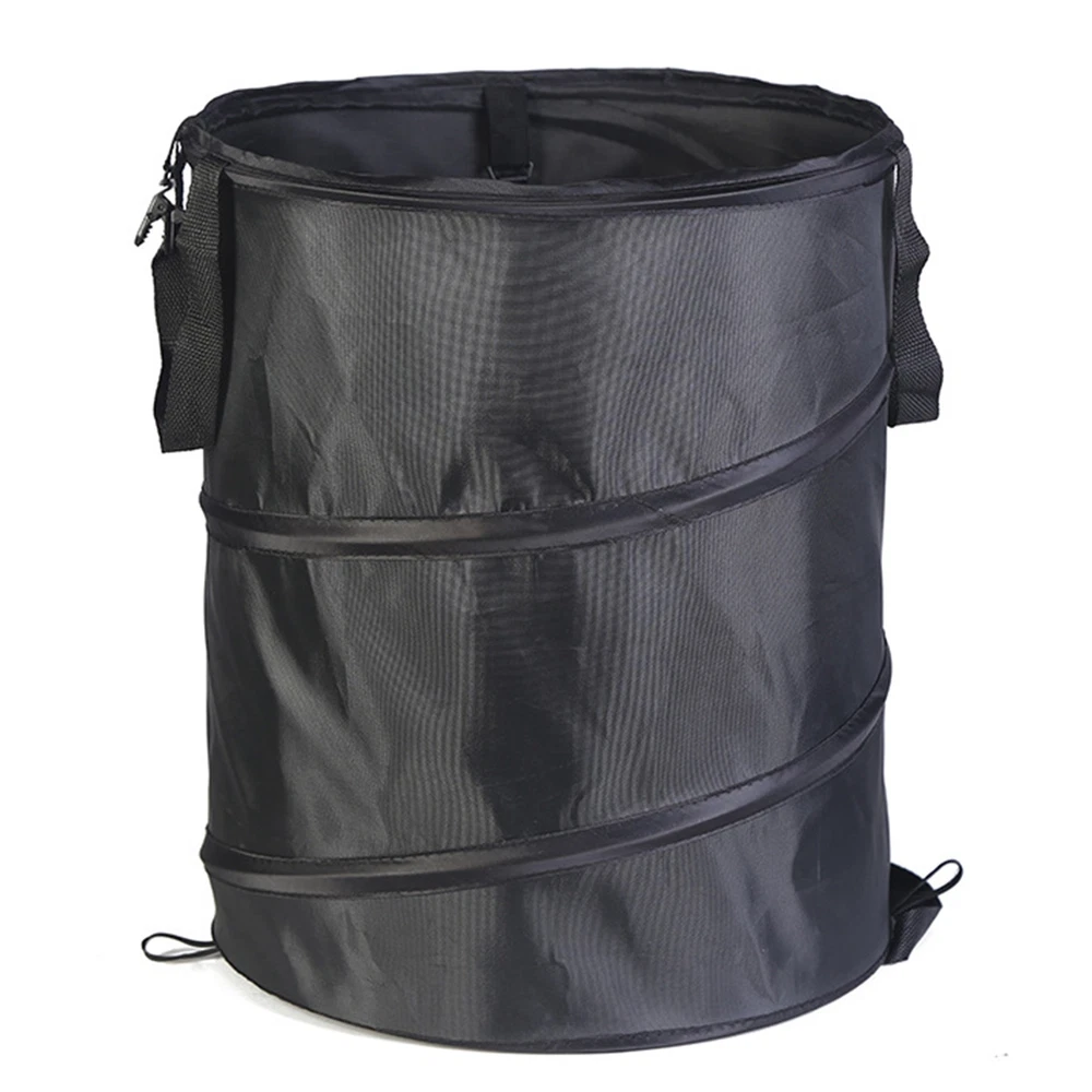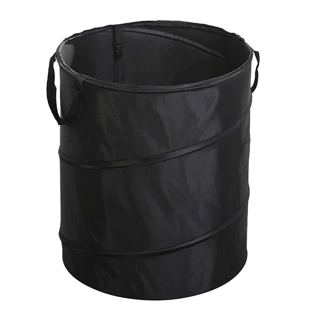 (Black D34 S Clip)Camping Trash Can Oxford Cloth Waste Bag Port FS