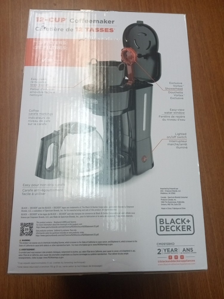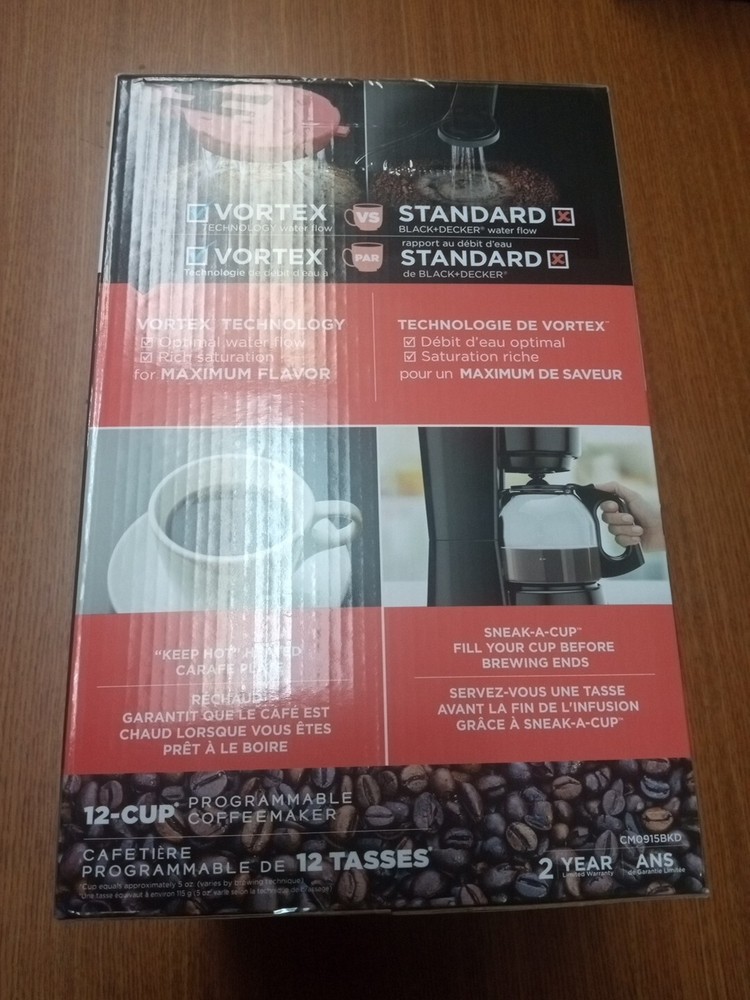 Black + Decker 12-Cup Coffeemaker (CM0915BKD) Brand New Vortex Technology