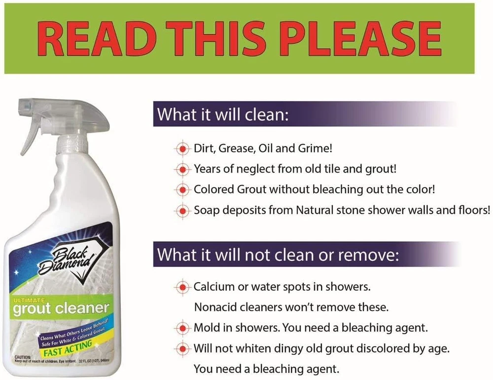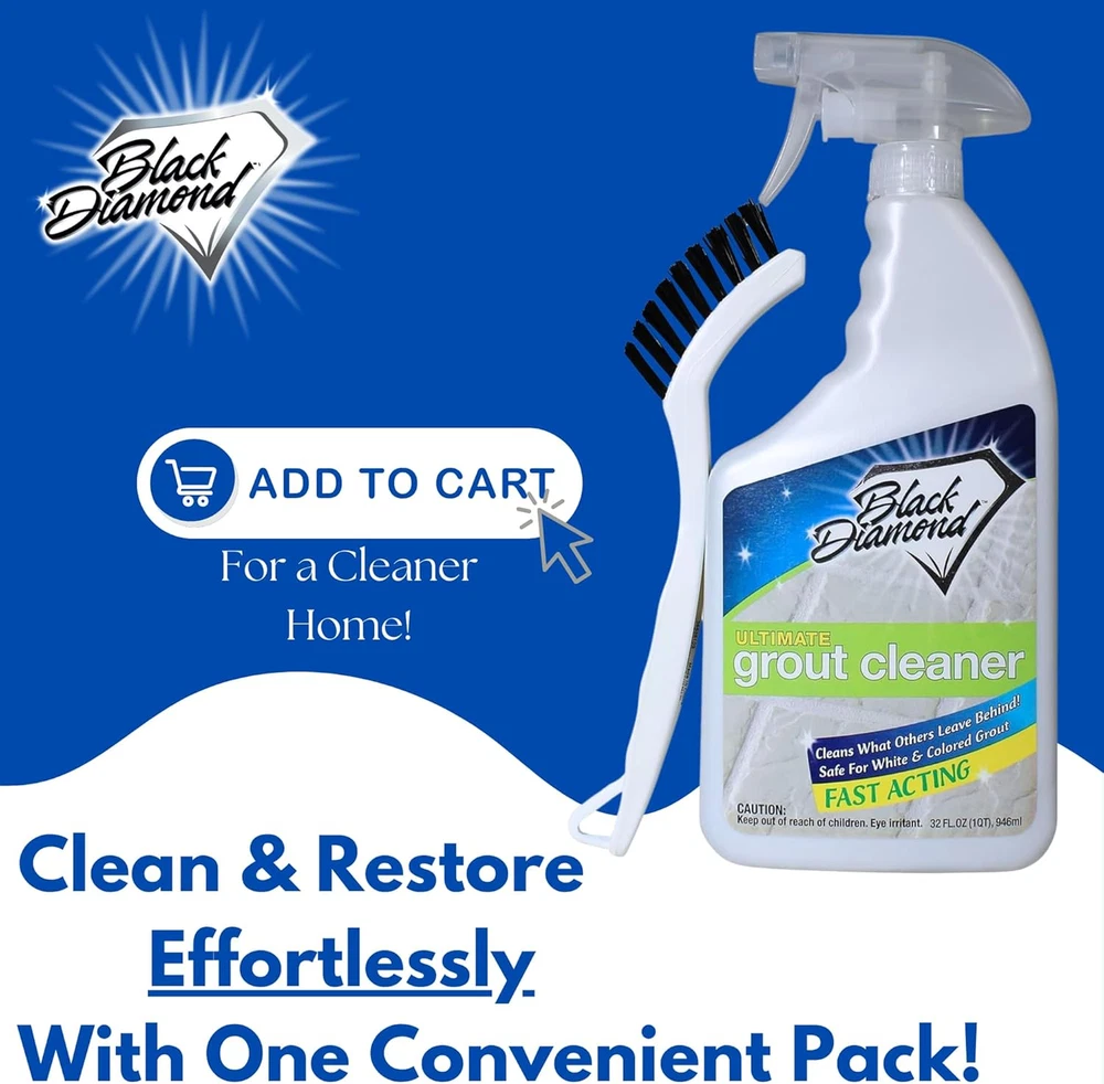 Store New Arrivals Add to Favorite View Feedback Black Diamond Ultimate Grout Cleaner: Best Cleaner for Tile,Ceramic,Porcelain, Marble Acid-Free Safe Deep Cleaner & Stain Remover for Even the Dirtiest Grout. (1-Quart/1-Brush) Description Item model number FBA_UGC-QT-Br Manufacturer Black Diamond Stoneworks Scent April Fresh Product Dimensions 4.5 x 3 x 9 inches; 2.25 Pounds Country of Origin USA Brand Black Diamond Stoneworks Material Feature Acid Free Is Discontinued By Manufacturer No Item Form Liquid Specific Uses For Product Grout Size 32 Fl Oz with Brush POWERFUL GROUT CLEANING: Offers a professional-strength, acid-free formula for deep cleaning and removing tough stains from tile grout in kitchens and bathrooms. SAFE FOR DELICATE SURFACES: Use confidently on colored grout and natural stone surfaces like ceramic, marble, and granite. Our safe, acid-free cleaner prevents damage to floors and walls. RESTORES GROUT COLOR: Not just a cleaner—our product revives the original color of your grout, enhancing the appearance of your floors and making them look new. FLEXIBLE USE OPTIONS: Effective with a grout brush or a steam cleaning machine, our cleaner provides versatile cleaning solutions to handle any grout cleaning task. Product Description No acids or harsh abrasives Harsh chemicals, abrasives, and solvents cause damage to the grout surface, and surrounding surfaces causing the grout and make it re-soil faster, and harder to clean. Deepest clean Our formula eliminates old and new stains at their source. Simply spray, agitate, and wipe Save your knees and back, without needing to scrub for hours. Protect the longevity of your surfaces Our formula is safe for grout, and surrounding surfaces. Eliminating damage, and the need to clean as frequently. Ultimate Grout Cleaner: Best Cleaner for Tile, Ceramic, Porcelain, Marble Acid-Free Safe Deep Cleaner & Stain Remover for Even The Dirtiest Grout STRONG ENOUGH FOR COMMERCIAL USE. A deep cleaner for grease, dirt, food spills, and soap scum GUARANTEED TO CLEAN EVEN THE DIRTIEST GROUT, the best way to clean grout. Made in San Clemente CA USA ABOUT US We offer the best prices around on high quality products. Our E-store includes media such as books, movies, music and games while offering electronics, toys, sporting apparel, clothing, tools, general home, garden items and more. SHIPPING We are always working hard to ensure your package arrives as soon as possible. Please understand that some factors like weather, high postal traffic, and the performance of shipping companies are outside of our control. We offer free shipping to the lower 48 states and ship within 2 business days of payment, usually sooner. We do not accept P.O. Boxes. Please provide a physical address. RETURNS We offer a 30-Day Return Policy on items which you are not completely satisfied with. You have the option for a full-refund or an exchange of the item. No returns are available on items shipped outside of the USA. PAYMENT We accept PayPal. CONTACT US This page content is yet to come Please ad us to your favorite seller and visit again later Thank You