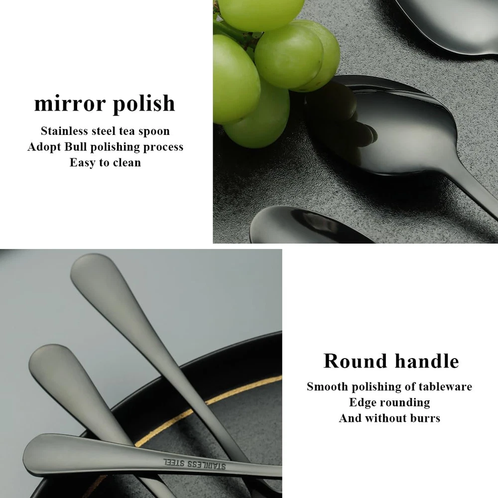 Black Dinner Spoons 12 Pieces, Black Titanium Plating Stainless Steel 7.28Inch S