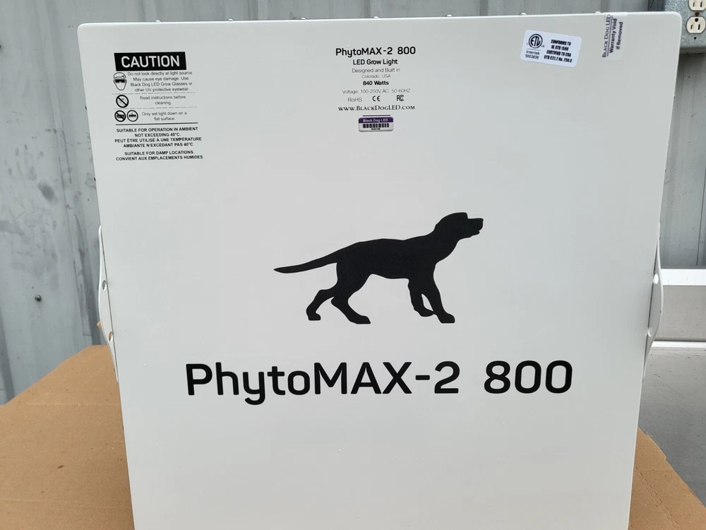 I have 10 used Black Dog LED PhytoMAX-2 800 LED Grow Lights, that are in excellent condition. Only used for 2 runs! I've been growing for 20 years, and these are hands down the best yielding lights, I have ever owned. Don't settle for less! Trichome production is off the charts! At 840 actual watts and 1282 μMol/s total photon flux, the patent-pending PhytoMAX-2 800 LED grow light will outperform any 1000W HID light. With PhytoMAX-2 we have delivered the most powerful and reliable, truly full spectrum grow lights (365-750nm, UV to NIR)! The PhytoMAX-2 800 uses only the highest-quality, latest-technology, top-bin LEDs to deliver Black Dog LED's proprietary full-cycle Phyto-Genesis Spectrum evenly over the entire footprint, with unprecedented PAR levels, canopy penetration and yields! Features & details MADE IN USA BY INDUSTRY LEADERS: Black Dog LED produces the most powerful LED grow lights with the largest research-proven footprints (without hot spots).COMPACT AND POWERFUL: High light intensity and energetic spectrum, crucial for canopy penetration to nourish lower leaves and flowers.INCREDIBLE GROW RESULTS: PhytoMAX-2 800 LED grow lights better penetrate dense canopies to produce a superior yield with higher quality flowers and more trichomes.LARGE FOOTPRINT: Up to 6' X 6' (36 square feet!) of flowering footprint coverage! Proven by independent spectroradiometer testing.OFTEN IMITATED, BUT NEVER DUPLICATED : Unique Phyto-Genesis Spectrum - The most efficient spectrum for growing plants, based on over 6 years of research and testing, outperforming HPS, MH, CMH (LEC), induction, fluorescent, and "white", so-called "full-spectrum" LEDs in equal wattage tests.