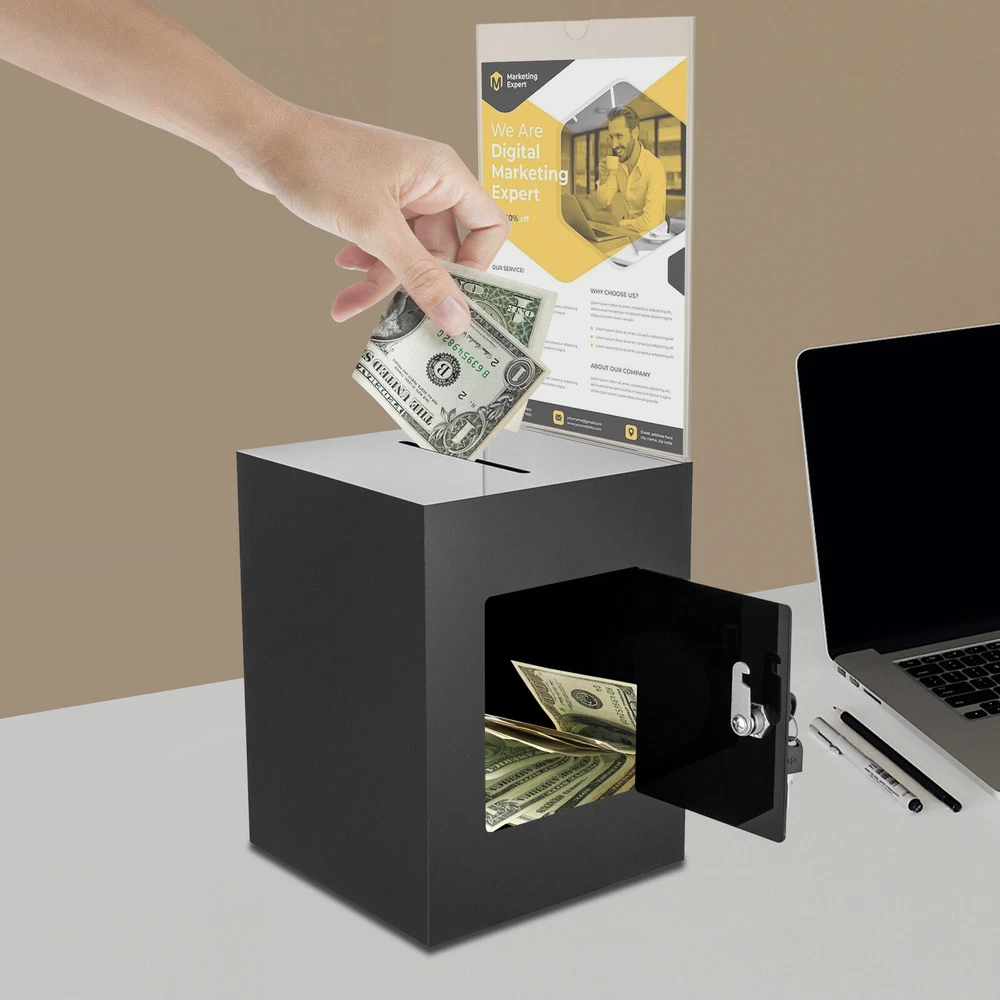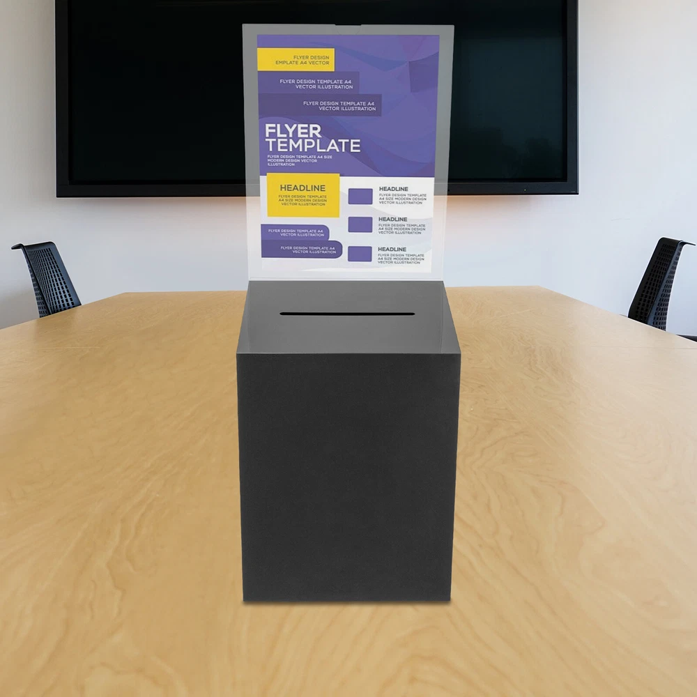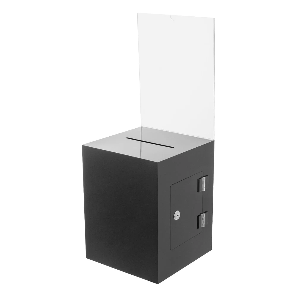 Package Included 1* Ballot Box 2* Keys Specification Color: Black Style: Modern Shape: Rectangular Material: Acrylic Process: Assembling, Bonding Assembly Required: No Mounting Type: Tabletop Lock Type: Key Number of Keys: 2 Capacity: 0.0075m³/0.26ft³ Suspended Load Capacity: 2kg/4.4 lbs Thickness: 3mm/ 0.12in Product Overall Height: 56cm/ 22in Package Size: 25*33*30cm/9.84*12.99*11.81in Box Size: 21.6*21.6*28cm/8.5*8.5*11in Box Door Size: 12.7*15.24cm/ 5*6in Sign Holder Size(L*H): 22*28cm/8.5*11in Slot Size: 100*5mm/ 3.93in*0.2in Gross Weight: 2.8kg/ 6.17lbs Net Weight: 2.3kg/ 5.07lbs Black Donation Box with Lock Ballot Box with Sign Holder Suggestion Box USA Description Voting or fundraising activities are right in front of you, but do you lack practical voting boxes? Let's take a look at our acrylic ballot box! With a lock and two keys, it can help you organize more professional voting and fundraising activities. Why wait? Choose our ballot box at the heart of your activities now! Key Features High-quality and Durable: It is made of high-quality acrylic with assembling and bonding processes, which has high tenacity and is not easy to break and deform. Suitable Size: The box size of 8.5*8.5*11 in ches provides sufficient space to accommodate items like coins and coupons while only taking a small footprint, making it a very suitable size. Professional and Modern: It can be used as a ballot box, charity box, etc., and the black, modern appearance adds a solemn and professional image to your activities. Good Protection: It has a lock with 2 keys that can prevent the loss of internal items and also provide convenience for you to take out internal items. Good Helper: With the help of this ballot box, you can easily accept the opinions of employees or customers and solve existing problems promptly, which is conducive to improving your image and providing better services for them. Easy to Clean: The smooth surface and simple structure allow you to easily remove dust from the surface with a towel. Ideal Gift: This practical product will be a wonderful surprise for your friends who need voting and fundraising activities , making their activities more professional. Buy with Confidence: We stand behind all our guests and look forward to assisting you with your purchase. It is our pleasure to answer your confusion and questions. The end of the story between us is not "we sell and you buy". Details Sign Holde r : You can insert paper with voting or donation promote information into it without the need for glue. The curved groove design makes it more convenient for you to take out the paper from the sign holder. Slot : It is convenient for you to put in letters or cards. Application It is suitable for restaurants, companies, churches, coffee shops, hotels, salons, bars, proms, parties, marketing promotions, tradeshows, exhibitions, etc., to accommodate donations, ticket comments, suggestions, coupons, ballots, notes, coins, business cards, and tips. Specification Color: Black Style: Modern Shape: Rectangular Material: Acrylic Process: Assembling, Bonding Assembly Required: No Mounting Type: Tabletop Lock Type: Key Number of Keys: 2 Capacity: 0.0075m³/0.26 ft³ Suspended Load Capacity: 2kg/4.4 lbs Thickness: 3mm/ 0.12in Product Overall Height: 56cm/ 22in Package Size: 25*33*30cm/9.84*12.99*11.81in Box Size: 21.6*21.6*28cm/8.5*8.5*11in Box Door Size: 12.7*15.24cm/ 5*6in Sign Holder Size(L*H): 22*28cm/8.5*11in Slot Size: 100*5mm/ 3.93in*0.2in Gross Weight: 2.8kg/ 6.17lbs Net Weight: 2.3kg/ 5.07lbs Package Included 1* Ballot Box 2* Keys Notes Please confirm the dimensions before purchasing. Please note this product does not include any card or money. Please allow the slight color difference caused by the shooting light and 1-3 cm error due to manual measurement, and make sure you do not mind before ordering. Payment Delivery details Terms of sales About us Contact us Payment We accept ebay payment 。 Fees such as import duties, taxes are not included in the item price or shipping costs. These charges are the buyer's responsibility. Delivery details Shipping: 2-9 working days to: USA Terms of sales We maintain high standards of excellence and strive for hundred percent customer satisfaction. Feedback is very important to us. We hope that you contact us immediately before you give neutral or negative feedback, so that we can address your concerns. It is impossible to address issues if we do not know about them! About us Your satis faction is our ultimate goal. We work hard to earn your trust and future business. Our certified technicians have tested each item before shipping. The unit comes with 1 year limited warranty on all manufacturing defects. a) If you receive a defective item, you may return it or ask for a discount. Please contact us within 14 days after you receive the package. b) What you returned must be intact and in its original packaging as re? u. Customer is responsible for shipping costs of the returned item. c) We will cover the cost of shipping back t with the shipping rate indicated in the registration page. We will send you a new unit or refund the full payment you paid. Thank you. Contact us Business Hour Business Hour: Monday To Friday: 8:30 AM to 5:00 PM (Beijing China time) Due to time zones, our reply to your questions may not be immediately. But within above working time, we will reply your email within 24 hours. If it's non-workdays, please kindly be patient and wait till Monday. Please contact us with ebay message. Please feel free to contact us if you have any questions. Monday To Friday: 8:30 AM to 5:00 PM (Beijing China time) Due to time zones, our reply to your questions may not be immediately. But within above working time, we will reply your email within 24 hours. If it's non-workdays, please kindly be patient and wait till Monday. Please contact us with ebay message. Please feel free to contact us if you have any questions. On Nov 5, 2024 at 18:28:39 PST, seller adde