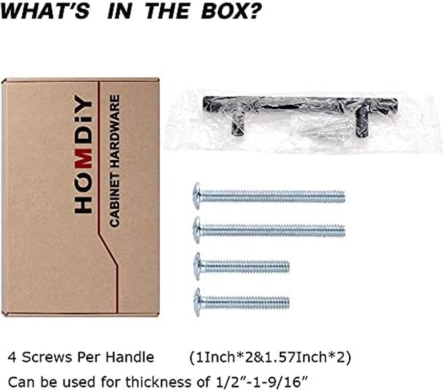 MEASUREMENTS: 4-1/2 in Center to Center with 5 in Overall Length PERFECT SERVICE: Money back guarantee, if there's any problem please feel free to contact us, we will refund every penny of your money or give you a replacement. MATERIAL & FINISHED:Black cabinet handles made of high quality Stainless Steel with Matte Black finished,they are hollow construction,lightweight but strong and durable. PACKAGE INCLUDE: Matched with standard screws(1 inch & 1.57 inch) per handlles. Every pull is individually wrapped and bagged to protect the beautiful color. WIDELY COMPATIBLE - Cabinet handles set, suitable for different styles of cabinets, wardrobe, wine cabinet, locker.