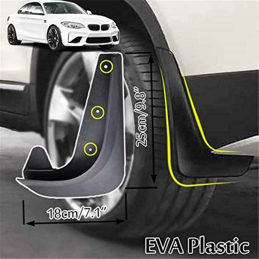 Items Description: Material: High Grade EVA Plastic. Deluxe Molded Splash Guards provide excellent lower body protection and accent the vehicle styling. Made of EVA Plastic to be rigid and paintable. They are molded to the contours of the vehicle for a custom fit. These tough-wearing mud guards seamlessly blend with the vehicles styling and minimise the risk of dirt, road debris and stone chips flying up from the Front and rear tyres.Provide additional protection whilst enhancing the sporty exterior of your vehicle. Fitment: Will Fit Most Vehicles Package Includes: 4Pcs (1Set) NOTE: THESE ARE UNIVERSAL MUD FLAPS SO YOU MAY NOT BE A PERFECT FIT ON SOME VEHICLES ALTERNATIVELY YOU MAY NEED TO TRIM THEM TO FIT CERTAIN VEHICLES ! eBay Cross Border Trade powered by ChannelEffect