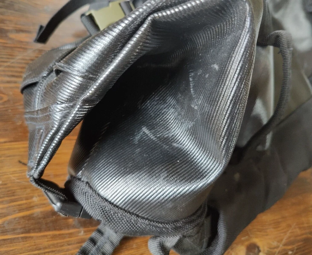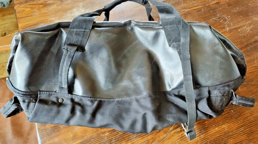 Features of Eagle Creek Migrate 40L Duffel Bag 100% Recycled Materials Full-access, wide-mouth opening Folds flat for compact storage 100% Recycled 900D Poly TPU main body fabric provides extreme abrasion and water-resistance while reducing your carbon footprint Tote and haul handles are connected using yoked webbing system for maximum load bearing Backpack straps tuck away for easy duffel carry or if checked as luggage #10 lockable main zipper with large finger loop zipper pulls for easy access Front zippered pocket for quick access essentials *******This is preowned and does show wear. Please carefully review all photos to ensure condition is acceptable. The bottom has several small wear holes and there is a white residue that does not wash off on several parts of the bag. One of the holes on the bottom of the bag does go all the way through.