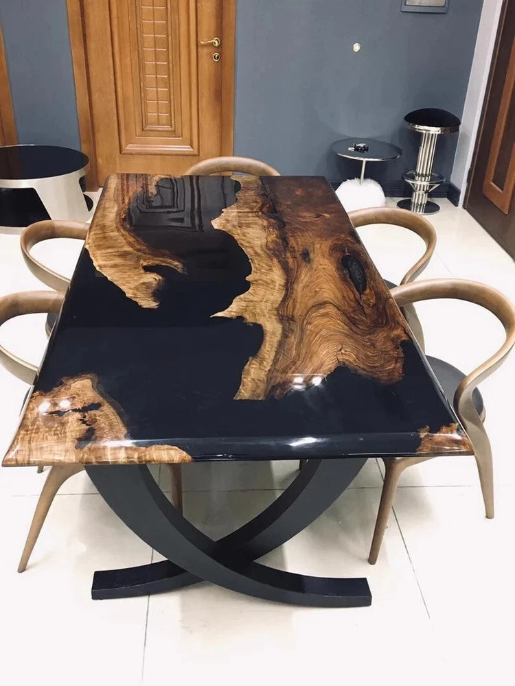 Black Epoxy Center Dining Table Office Desk Table Epoxy Bar Tops Cafeteria Decor