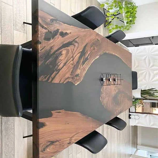 Black Epoxy Resin Dining Table , Epoxy Resin Counter Table, Meeting Desk Decor