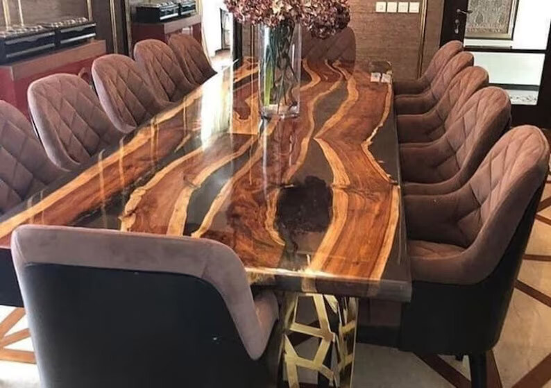 1. love the table, a true work of art. Price to quality relationship very high. There are a lot of wanna bes out there, but few true craftsmen in this space, and they are craftsmen. Lots of back and forth to get what we desired.. nonlinear edges, curvy river, branch circles within wood, blue resin covering only 20% of table overall, specific length and width, leg style. Shipped via air very quickly too. Two thumbs up!