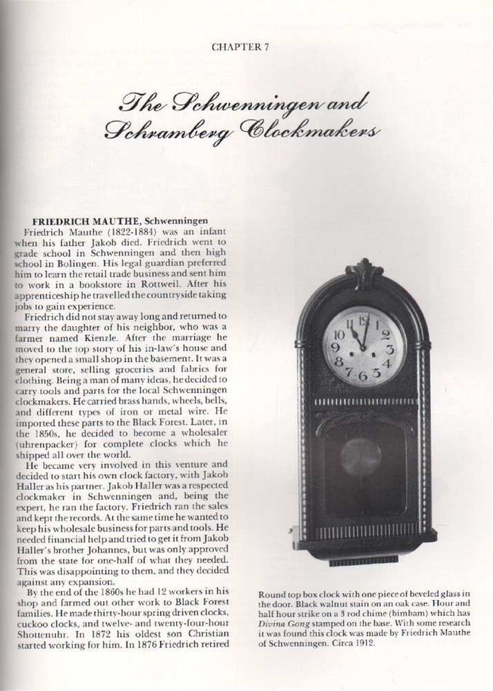 Author:Rick OrtenburgerSynopsis:The art of tracking time has been evidenced for over 300 years in the Black Forest area of Germany. Cuckoo and singing bird clocks, early glass bell, trumpeter, Jockele, animation, and picture frame clocks all have in the Black Forest area by skilled clockmakers who have transformed the function of time into a true form of art through their clocks. Rick Ortenburger's important new study traces the development of this fascinating Black Forest clock industry between about 1700 and 1930. He provides useful information that will meet the collectors' need and increase the appreciation of the beautiful craft these clocks represent. Photographs in color and black and white of 600 different examples make the industry's evolution from early cottage farm houses to the later development of factories come to life., The art of tracking time has been evidenced for over 300 years in the Black Forest area of Germany. Cuckoo and singing bird clocks, early glass bell, trumpeter, Jockele, animation, and picture frame clocks all have in the Black Forest area by skilled clockmakers who have transformed the function of time into a true form of art through their clocks.Rick Ortenburger's important new study traces the development of this fascinating Black Forest clock industry between about 1700 and 1930. He provides useful information that will meet the collectors' need and increase the appreciation of the beautiful craft these clocks represent. Photographs in color and black and white of 600 different examples make the industry's evolution from early cottage farm houses to the later development of factories come to life., Over 600 Black Forest clocks are illustrated in this important horological study. The art of tracking time has been evidenced for over 300 years in the Black Forest area of Germany. Cuckoo and singing bird clocks, early glass bell, trumpeter, Jockele, animation, and picture frame clocks all have in the Black Forest area by skilled clockmakers who have transformed the function of time into a true form of art through their clocks. Author Rick Ortenburger's important study here traces the development of this fascinating Black Forest clock industry between about 1700 and 1930. He provides useful information that will meet the collectors' need and increase the appreciation of the beautiful craft these clocks represent. Photographs in color and black and white of 600 different examples make the industry's evolution from early cottage farm houses to the later development of factories come to life.ISBN-10:088740300Xgtin13:9780887403002Item Height:9.5 In.Dewey Decimal:681.1/13Format:HardcoverItem Weight:71.2 OzPublisher:Schiffer Publishing, The LimitedIllustrator:YesLC Classification Number:NK7495.G4O77 1991Publication Year:1997Dewey Edition:20Number of Volumes:1 vol.Number of Pages:300 pagesItem Width:8.5 In.Language:EnglishIntended Audience:TradeItem Length:11 In.ISBN-13:9780887403002LCCN:90-063797brand:Schiffer Publishing, The LimitedTopic:Europe / Germany, Clocks & Watches, Antiques & Collectibles, HistoryBook Title:Black Forest Clocks