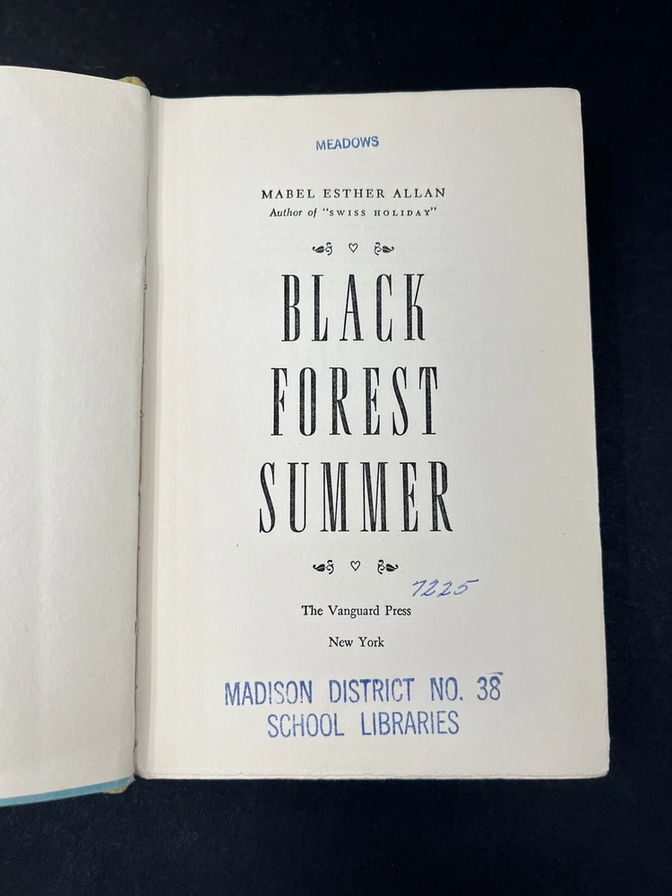 Experience a captivating tale of family and adventure with Black Forest Summer by Mabel Esther Allan. This collectible hardcover book, published by The Vanguard Press, is written in English and is an original edition. The author, known for her classic stories, takes readers on a journey through the Black Forest in the United States, where a family faces challenges and makes unforgettable memories. This book is a must-have for fans of family and teen literature and is the perfect addition to any collection.