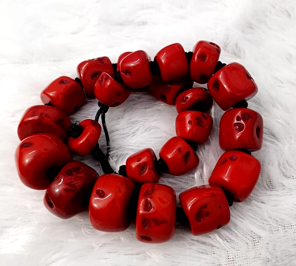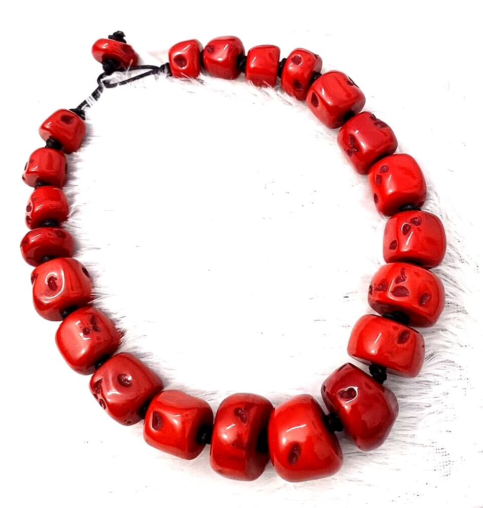 Add a touch of bohemian elegance to your outfit with this beautiful Tibetan handmade necklace from New India Handicrafts. The necklace features a floating/keepsake pendant with a Moon shape, crafted from high-quality resin and cotton materials. The pendant is reversible and hangs on a 20-inch ball/bead chain with a hook closure. This necklace is perfect for any occasion, whether it's an engagement, wedding, anniversary, birthday, or even Valentine's Day. The vibrant red color and intricate beadwork make it a great choice for those who love beauty, beach, and ethnic themes. It's a unique piece that will surely complement any outfit.