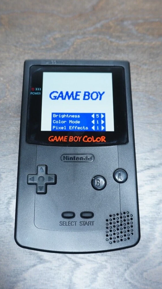 The product is a modified Black Nintendo Game Boy Color handheld system featuring an OLED touch screen. This Game Boy Colors unique OLED screen offers a more vibrant gaming experience to your old nostalgic games. It will bring a whole new life to your childhood! It is region-free and includes batteries. This unique console has a headphone jack for connectivity and is in good working condition as it has been tested. You can also customize the screen by holding your finger in the lower half of the screen for a few seconds, you can EVEN change the logo color!