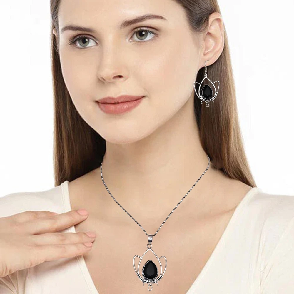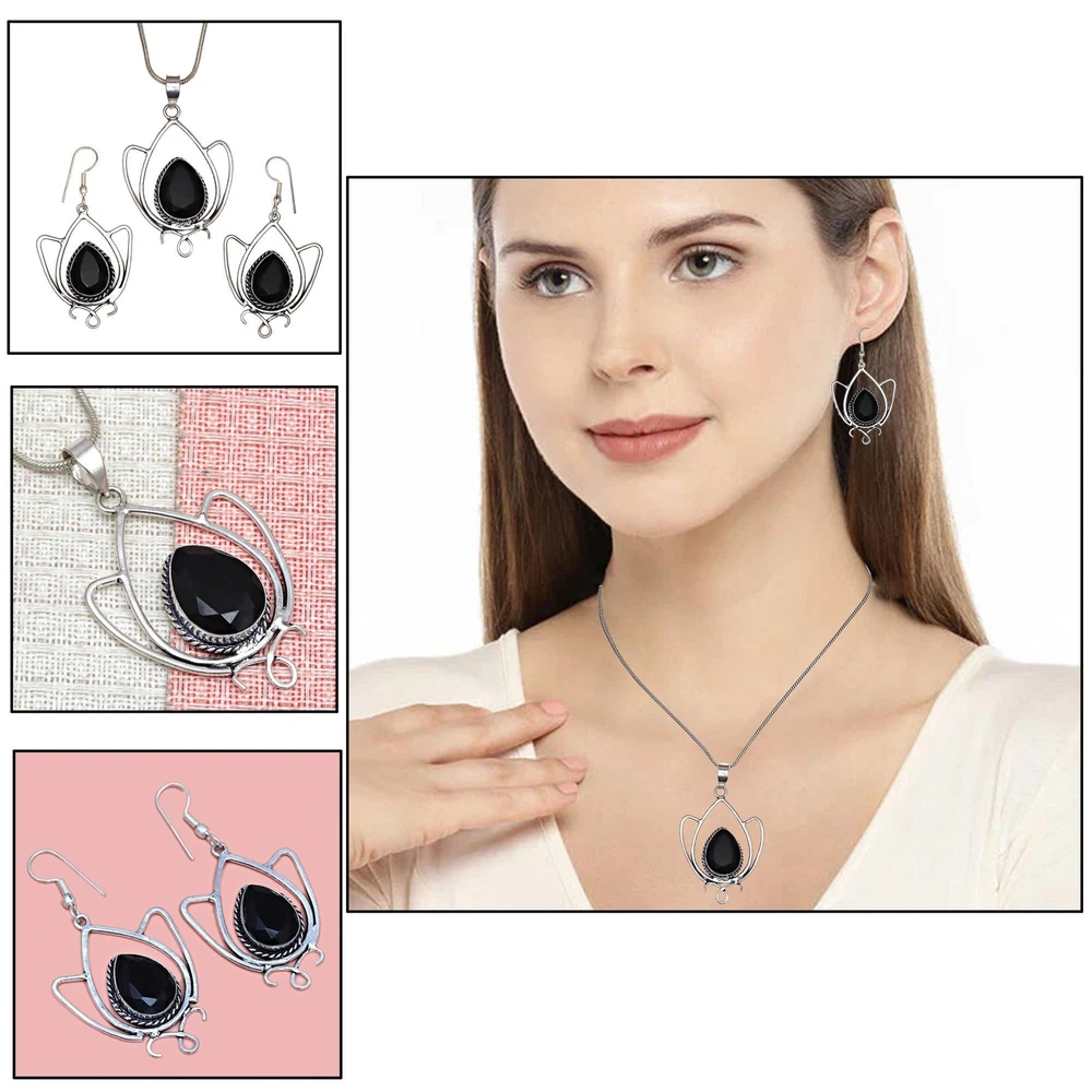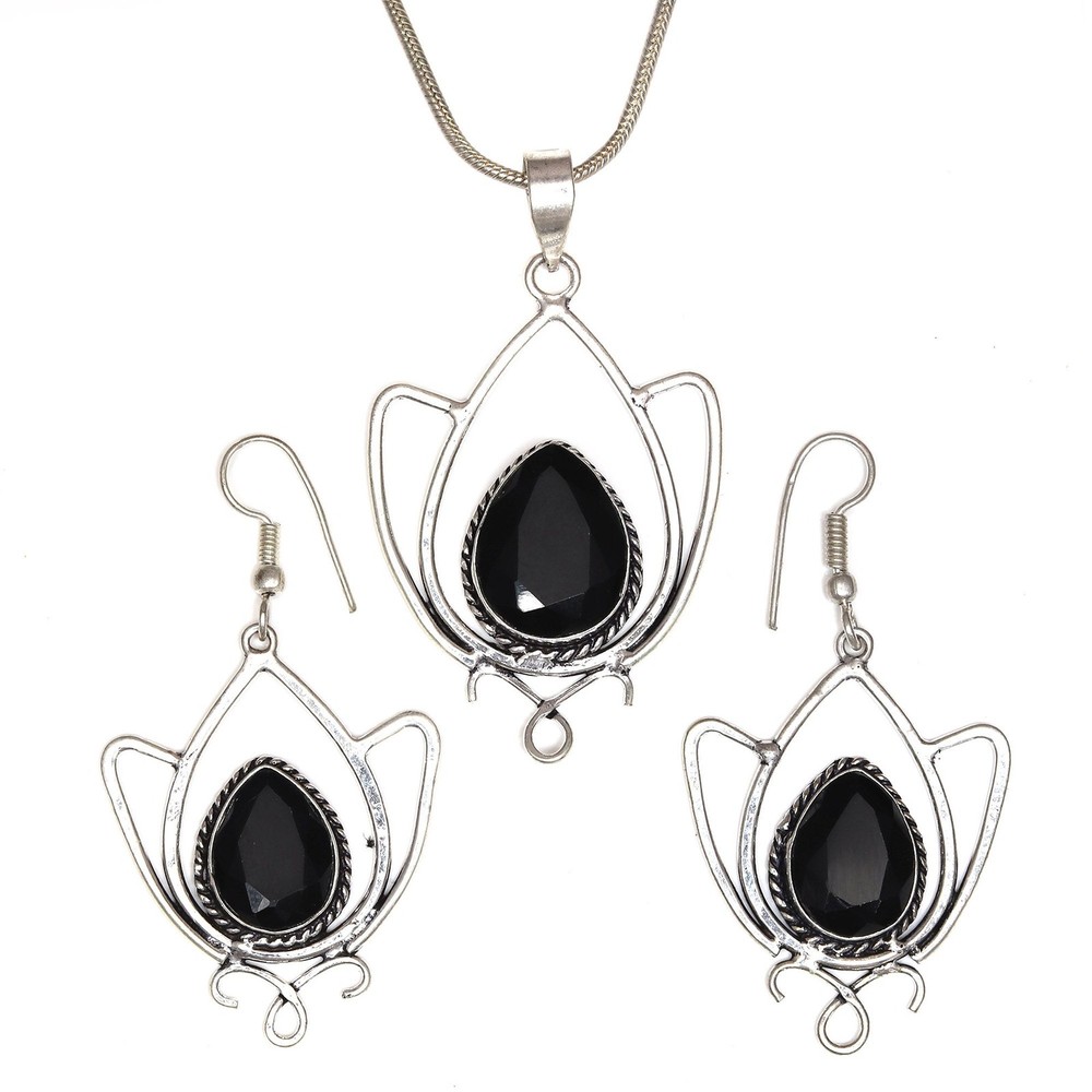 Main Stone Shape: Pear Main Stone Creation: Lab-Created Seller Warranty: No Secondary Stone: No Stone Metal: Silver Plated Set Includes: Pendant, Earrings Theme: Beach, Beauty, Ethnic, Family & Friends, Halloween Customized: No Wholesale: Yes gtin13: does not apply Ring Size: Unknown Country/Region of Manufacture: India Antique: No Type: Jewelry Set Main Stone Colour: Black Handmade: Yes Brand: Unbranded Color: Black Main Stone Treatment: Not Enhanced Material: Crystal, Stone UPC: does not apply Colour: Black Occasion: Anniversary, Birthday, Christmas, Engagement, Mother's Day, Wedding, Valentine's Day Gemstone Clarity Grade: Eye Clean Base Metal: Brass Vintage: No Country of Origin: India Main Stone: Black Spinal Cut Grade: Excellent Metal Purity: Unknown Features: Adjustable, Engraved, Stackable Customised: No Main Stone Color: Black