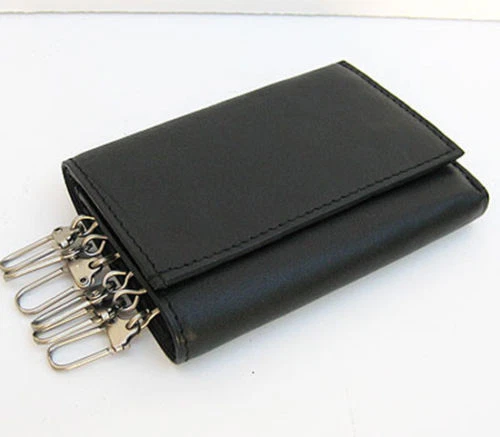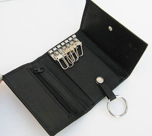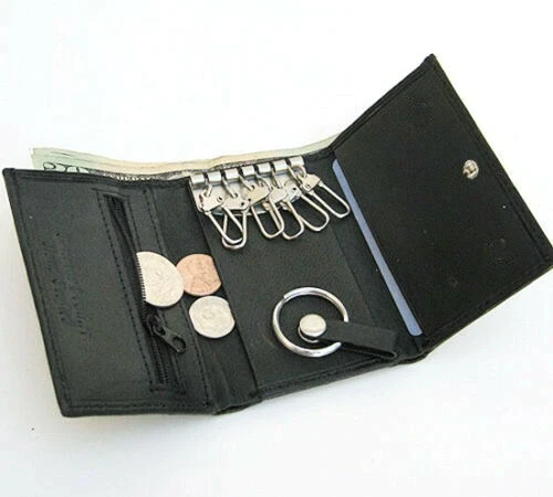 Black Genuine Leather Men's Keychain Wallet 7 Key Ring Coin Holder