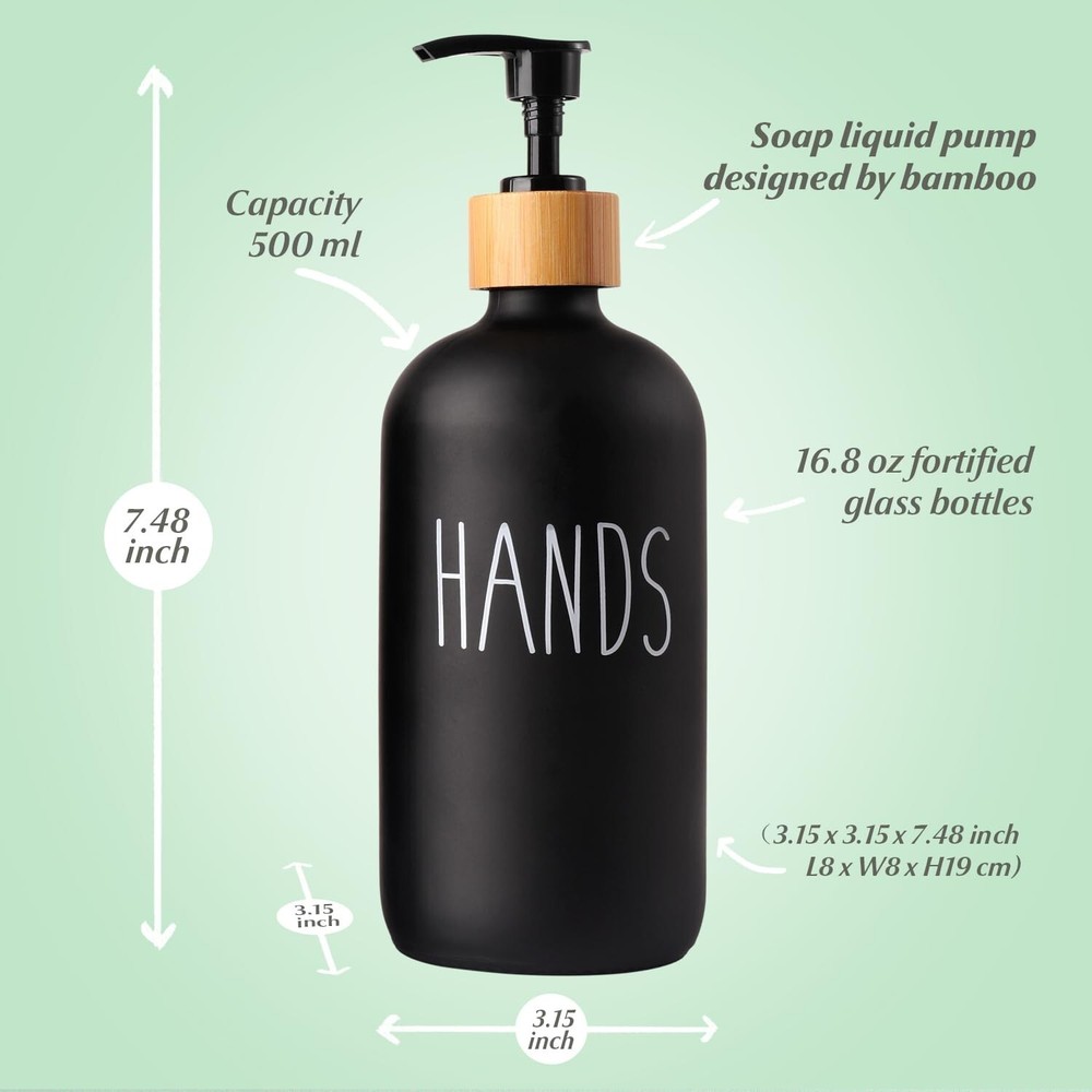 Black Glass Kitchen Soap Dispenser, Detergent Dispenser or Hands Soap Dispenser for Kitchen Sink, Black Soap Dispenser, Modern Farmhouse Decor Dish Soap Pump for Kitchen Organization - Buy Now with Fast Shipping! Black Glass Kitchen Soap Dispenser, Detergent Dispenser or Hands Soap Dispenser for Kitchen Sink, Black Soap Dispenser, Modern Farmhouse Decor Dish Soap Pump for Kitchen Organization Product Details Color: C03-black-hands Material: Without Tray Brand: Loochica Product Dimensions: 3.94"L x 7.48"W x 7.8"H Shape: Round Color: C03-black-hands Material: Without Tray Brand: Loochica Product Dimensions: 3.94"L x 7.48"W x 7.8"H Shape: Round Number of Sets: 2 Number of Items: 2 Item Weight: 11.3 ounces Manufacturer: Loochica Direct Country of Origin: China Item model number: LLCSD Date First Available: November 1, 2022 Key Features ✅ HANDS Black Dispenser For Kitchen Use - Bottle contain Hands mark on the bottle. If you are having problems mix up or get asked Which Soap is Which?", this would solve this problem well. The label is not only good for distinction glass soap dispenser with pump but also looks elegant. ✅ VERSATILE & REUSABLE for BATHROOM USE - Each package comes with 3 stickers-"Shampoo", "Conditioner" and "Body Lotion". Our soap dispensers can be changed to Bathroom/Shower use by covering marks with our srickers. ✅ PREMIUM QUALITY & DURABLE- This soap dispenser set is made of thick quality glass, matched with a bamboo soap dispenser pump. Our soap dispensers are durable for years. Premium 2CC pump provides more liquids per press. ✅ FARMHOUSE STYLE For Special Decoration- These dish soap dispensers for kitchen/bathroom are both decorative and practical. Whether you're looking for any farmhouse decor for the kitchen or farmhouse soap dispenser, this hand and dish soap dispenser set adds that special touch to everyone's kitchen. ✅ Extra Funnels to Filling the Bottle - Having problems filling soap dispenser bottles? Each package come with one extra funnels, which would help filling or refilling bottle with different liquids. Get our products and find it out! Product Description