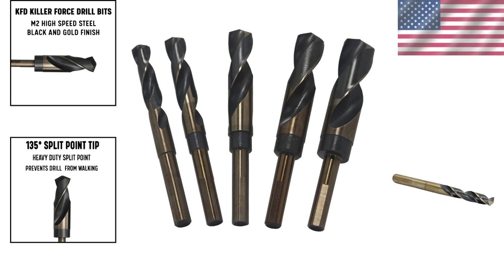 Premium Black and Gold Reduced Shank Drill Bit Set 9/16" - 1" - 135° Angle ‹ › ‹ › ‹ › ‹ › ‹ › ‹ › ‹ › ‹ › ‹ › ‹ › ‹ › ‹ › Premium Black and Gold Reduced Shank Drill Bit Set - Sizes included: 9/16", 5/8", 3/4", 7/8", and 1" with 1/2" reduced shanks. Key Features: Constructed from high-speed steel for superior strength and durability. Gold and black surface treatment specifically designed for stainless steel and other hard metal drilling. 135° angled heavy-duty split point promotes self-centering and minimizes thrust during drilling. Counterclockwise (right-hand cut) spiral flutes efficiently evacuate chips up and out of the cut, enhancing performance and reducing clogging. Precision ground to ensure a high degree of concentricity between the shank and body diameter. Benefits: Outstanding wear resistance, making it perfect for general-purpose applications. Increases the size range capacity of portable drill chucks. Ideal for drilling low and medium tensile strength materials with minimal tool change adjustments. Enhanced control and efficiency while drilling through tough materials. Why Choose Our Premium Drill Bit Set? Elevate your drilling capabilities with our Premium Black and Gold Reduced Shank Drill Bit Set. With sizes ranging from 9/16" to 1", you will have the versatility and power to tackle any project with precision. Crafted from high-speed steel and treated for enhanced performance, this drill bit set is not just functional but also a statement of sophistication in your tool collection. Whether you're working with stainless steel or other challenging metals, this heavy-duty set ensures self-centering accuracy and efficient chip evacuation, allowing for a smooth, uninterrupted drilling experience. Don't settle for less; invest in quality and precision. Order your Premium Drill Bit Set today and transform your drilling efficiency! Shipping Free & Fast Shipping - We offer free shipping to most of the USA with a normal delivery time of 3-7 days. However, due to the current situation, additional delivery time (up to 3 weeks) may be required for some items. Alternative Carriers - We may use alternative carriers (e.g. USPS, FedEx, UPS, etc.) to ensure your package arrives safely and on time. Due to the use of multiple carriers, we are unable to provide a tracking number automatically. Handling Time - Orders are processed and shipped within 1-2 business days of receiving cleared payment. Shipping Restrictions - Shipping to Alaska, Hawaii, Puerto Rico, Guam, and other US territories may incur shipping charges or delivery restrictions. Please contact us before ordering, or your order can be refunded/cancelled. State Restrictions - There may be restrictions based on your state of purchase. For example, certain items may not be shipped to California due to state regulations. Contact for Tracking Updates - If you require tracking updates or have any concerns about the delivery of your order, please feel free to contact us, and we will be happy to assist you. Return 30-Day Hassle-Free Returns - We want you to be completely satisfied with your purchase. If you are not, you can return the item within 30 days of receiving it for a full refund or exchange. Easy Return Process - To start a return, simply contact us and we will provide you with a prepaid return shipping label and detailed instructions. Restocking Fee - There are no restocking fees for returns. However, the buyer is responsible for return shipping costs if the return is not due to a seller's error. Refund Processing Time - Refunds will be processed within 5 business days of receiving the returned item in its original condition. Payment We accept all major credit cards, PayPal, and Apple Pay for your convenience. Your payment information is secure and encrypted to ensure a safe and seamless transaction. Please complete your payment within 3 days of purchase to avoid any delays in shipping. Feedback Your feedback is extremely important to us. We strive to provide the best products and customer service possible. If you are satisfied with your purchase, please take a moment to leave us a positive review. If you have any concerns or issues with your order, please contact us before leaving negative feedback. We are committed to resolving any problems and ensuring your satisfaction. Contact Us If you have any questions or concerns, please feel free to reach out to our customer support team. You can contact us through the eBay messaging system. We are available Monday to Friday, 9:00 am to 5:00 pm EST, and we will do our best to respond to your inquiry within 24 hours. Thank you for supporting our small family business! UPC: Not Set Model: Not Set Item Height: Not Set Item Depth: 2.44 in Unit Quantity: 2.27 lb Suitable For: Air Compressor,Air Drill,Angle Grinder,Buffing,Cement,Commercial,Drill,Drywall Compound,Grout,Grout Mixer,Lathe,Liquid,Mortar,Orbital Sander,Oscillating Tool,Paint,Plaster,Polishing,Residential,Rotary Tool,Thinset Mortar,Tile Adhesive,Work Bench Type: Drill Bit Application: Cutting,Grinding,Grinding/Sanding,Grinding and Cutting,Mixing Brand: Unbranded Number of Items in Set: 5 Package Quantity: 1 Material: High Speed Steel MPN: Not Set Color: Black Country/Region of Manufacture: Not Set Item Diameter: 9/16 in Item Length: 16 in Item Width: Not Set Manufacturer Warranty: Not Set Item Weight: 2.27 lb Unit Type: lb