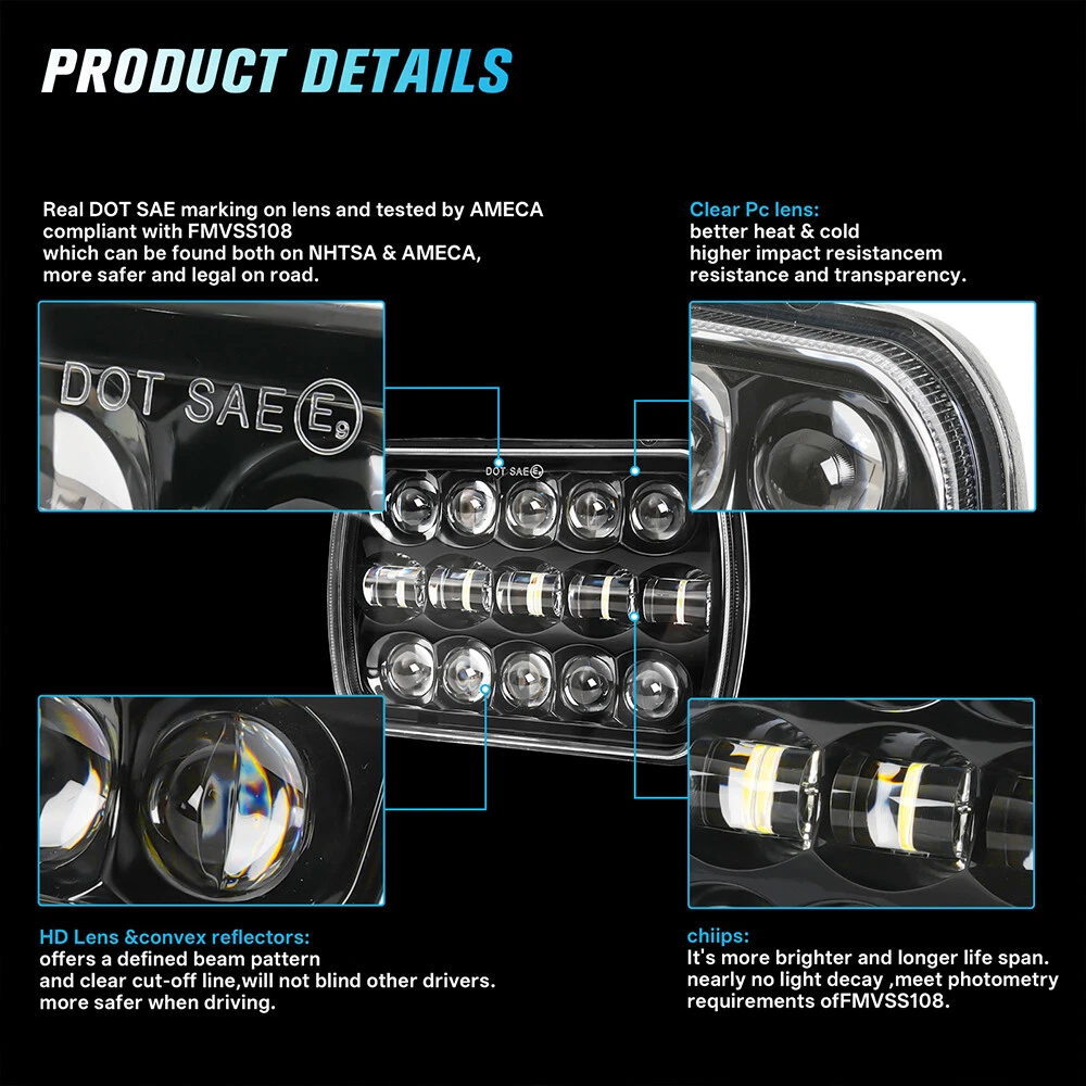 4PCS 4x6 LED Headlights for 1979-1986 Ford Mustang Single Turn
