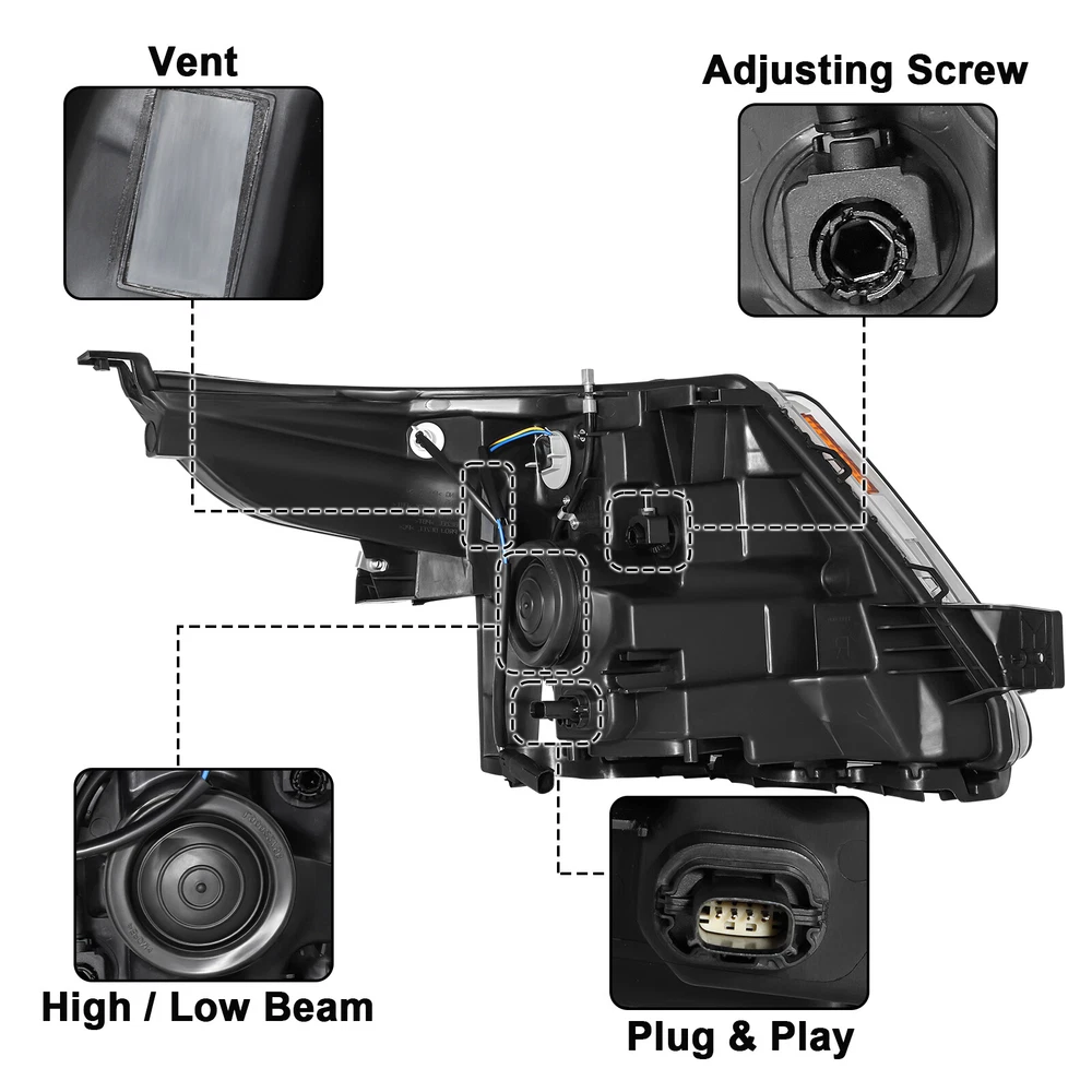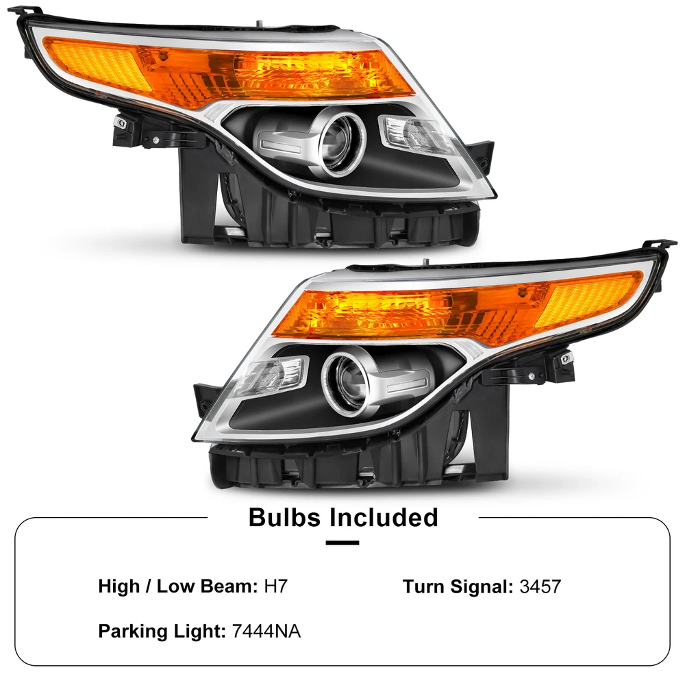 Black Housing Amber Corner Projector Headlights W/Bulbs For 11-15 Ford Explorer Features: 1.Direct replacement for stock assemblies 2.Comes in pairs with driver & passenger sides (left & right) 3.DOT and SAE compliant with quality meeting or exceeding OEM units 4.Comes with bulbs to save your money and time 5.All Headlight Lenses come with anti-yellowing/ageing coating 6.1-Year limited warranty Specification: High Beam Bulb: H7 ( Bulbs are included ) Low Beam Bulb: H7 ( Bulbs are included ) Turn Signal Light: 3457 ( Bulbs are included ) Black Housing Clear Lens Amber Reflector Compatible with: 2013-2015 Ford Explorer Sport 2011-2015 Ford Explorer BaseXLT Limited Only Compatible with Factory Halogen Headlight Models Not Compatible with Factory HID/Xenon Headlight Models Package includes: 1 Pair of headlights Payment Shiping Policy Returns Policy Feedback Contact us Payment We accept PayPal, Google Pay, Credit Cards, and Debit Cards. Shiping Policy All Orders Will Ship Within Two Business Days.Except PR,HI,AK,GU and PO Box addresses. No local pick up All Packages Will Be Inspect Before Shipping, We Will Provide All Packing Material Needed For Your Package For Shipping Such As Boxes, Cushioning And Tape To Improve Shipping Quality. Very Important: Double check shipping address. We are not responsible for incorrect or undeliverable addresses. Returns Policy 60 Days returns satisfaction guarantee. All of Our Items Are 100% Brand New. If The Item Shows Up Defective or Broken, Please Contact Us Within 3 Business Days By Using "Ask A Question" Link Located At The Bottom of Our Listing. Your Questions/Concerns Will Be Responded Within 12 Hours Monday To Friday. Buyers May Contact us On The Weekends or Pubic Holidays And We Will Respond On The Next Working Day. We Will Offer Replacements, Exchange or Full Refund. 100% Satisfaction Guaranteed. We Will File Damage Or Lost Claim For Our Buyers Feedback We will leave a positive feeback immediately after payment is received. We appreciate a positive feedback as much as you do. If you have any issue with order,pls. contact us before leaving a feedback. We will glad to resolve your issue.Your satisfaction is our priority. Contact us If you have any concerns, Pls. feel free to contact us at any time.
