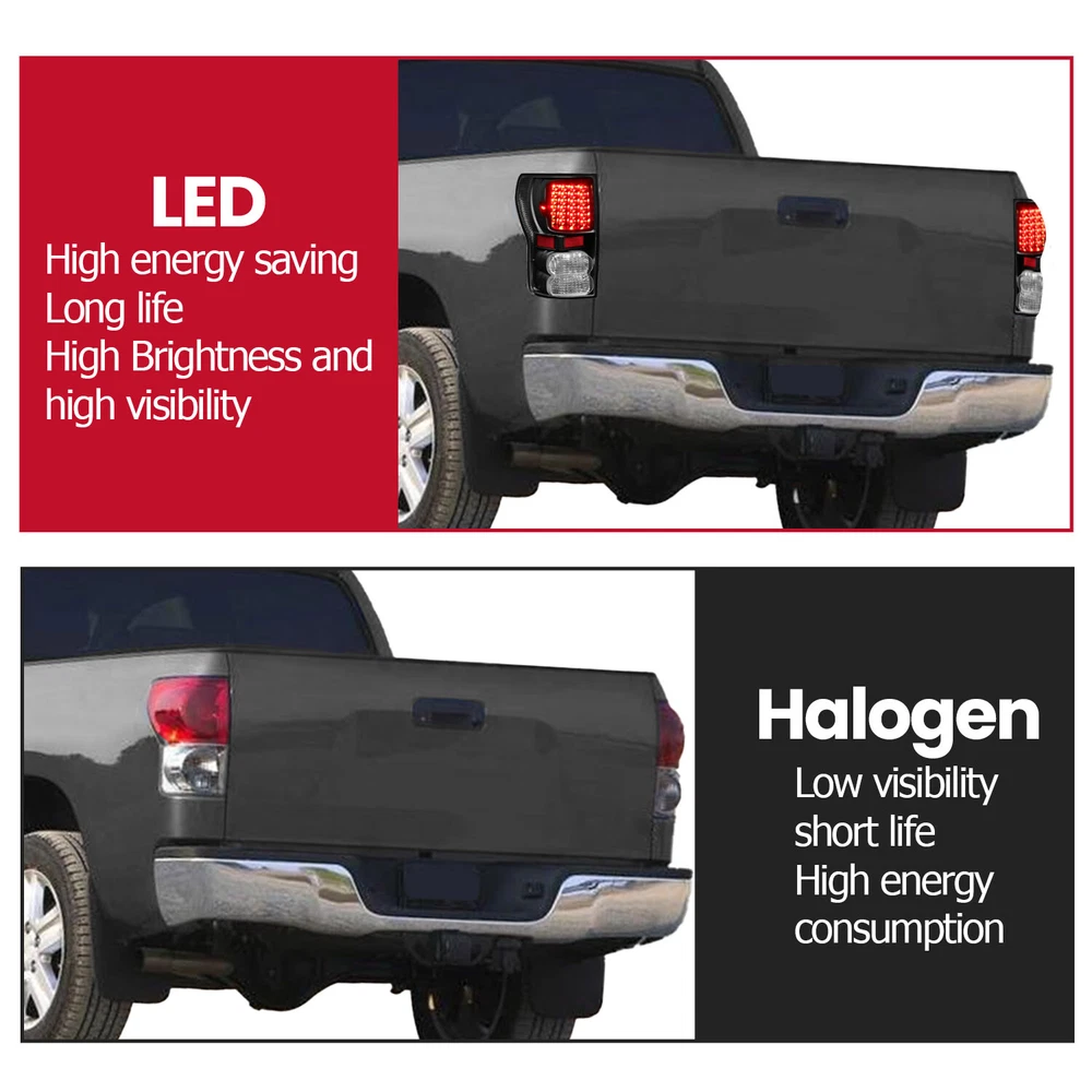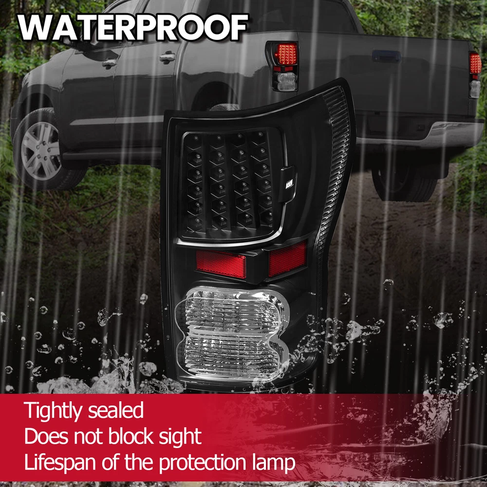 Black Housing LED Tail Lights Brake Lamps Set For Toyota Tundra 2007-2013 FIT FOR: For Toyota Tundra 2007-2013 Specification : Condition: 100% Brand New Color:Clear Lens+Black Housing Lens Color:Clear Housing Color:Black Material: Plastic Lighting Technology:LED Installation Method:Screw-On Placement on Vehicle:Rear, Left, Right Replace for TO2801165, TO2800165,815500C070,815600C070, 815500C090, 815600C090, TO2801183, TO2800183 Features: Helps improve your vehicle's visual appeal. Tail lights are built to withstand adverse weather conditions, including rain, snow, and extreme temperatures. They are often made of impact-resistant materials to protect the light assembly from damage. Package Includes : 1 X Pair of LED Tail Lights ( Driver & Passenger Side) Shipping: All items will be shipped out in 1 business day, no expedited service available. We ship our items to USA only(Does NOT include Hawaii, Alaska or Puerto Rico, PO Boxes/APO's). Shipping Notes: We use multiple warehouses and will select the nearest warehouse for delivery according to your order address and our inventory, Thank you for your cooperation. Contact us: Any Questions, Just feel free to contact us on eBay. We will reply you in 24 hours. On Dec 22, 2024 at 21:23:55 PST, seller added the following information: