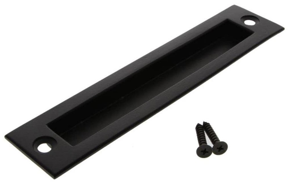 Black Iron Barn Door Flush Pull 2x8x0.5 Inches