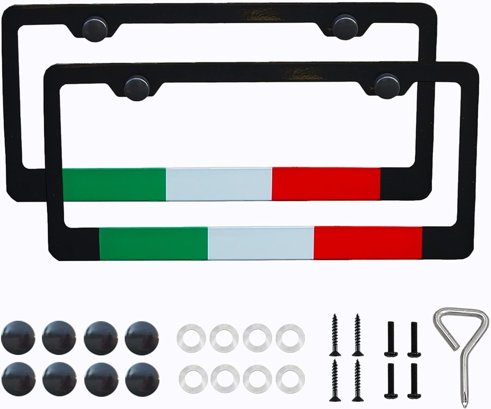 Black Italian Flag License Plate Frame - Fade-Resistant & Easy to Install