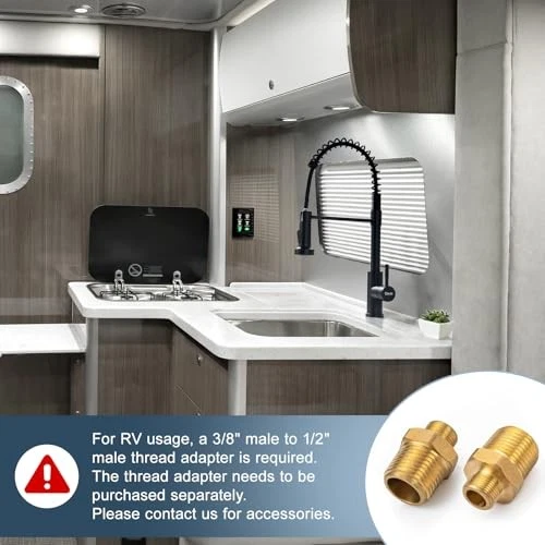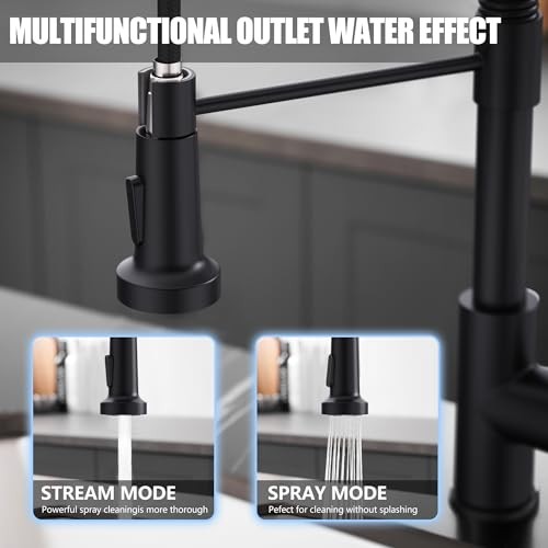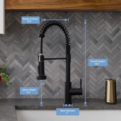 Return Policy Fast Delivery Trusted seller Black Kitchen Faucet with Pull Down Sprayer Single Hole Spring Kitchen Sink Faucet, Suitable for Farmhouses, RV, Utility Laundry Room, Outdoor, and Campers. Llave para fregadero de cocina Product Description Note: A separate 3/8" Male to 1/2" Male thread adapter is required to connect to RV water systems. To cover additional holes on the sink, a deck plate must be purchased separately. Premium Quality: Crafted from high-quality stainless steel, this faucet body is built for strength. It boasts excellent rust and corrosion resistance, effortlessly withstands humid environments, and durable and long-lasting. Multifunctional Nozzle: This faucet features two water flow modes, Stream and Spray. The stream mode quickly fills large pots, saving time and improving efficiency. The spray mode effectively prevents splashing for easy rinsing of vegetables, fruits, and tableware. Flexible Design: Equipped with a high-quality, freely retractable hose, it can easily extend to every corner of the sink, rinsing the inner wall of the sink and removing food residue from corners. The hose retracts smoothly and effortlessly. Product Specifications: Ideal for most kitchen setups, this faucet measures 18.5" in height, with a spout reach of 8.3" and spout height of 5.5". It comes with 23.6" supply hoses for hot and cold water, featuring 3/8" female compression threads for compatibility. Easy Installation: The product includes detailed instructions and installation hardware, eliminating the need for a professional plumber. You can easily complete the installation yourself in just 20 minutes and instantly upgrade your kitchen experience. Shipping Returns Payment Shipping Shipping is FREE to all addresses other than APO/PO boxes in the lower 48 states. All our stock ships from US-based warehouses. Shipped via USPS or UPS (depending on location and package weight) Unless stated otherwise, all orders will ship within 24-72 hours of your payment being processed. Check our feedback to see the great reviews of FAST shipping we offer. Returns Seller does not accept returns Payment We currently accept payment via eBay managed payments only. Once payment is cleared, we will dispatch your shipment within 1-3 business days. Please refer to the "Shipping" tab for more information regarding shipping speed to your destination.